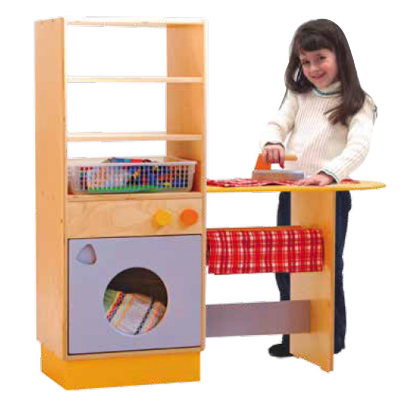Lavo stendo e stiro, struttura realizzata in multistrato di betulla. Secondo le indicazioni del metodo Montessoriano, diamo spazio alla creatività ed alla capacità del bimbo di imitare il comportamento degli adulti. Creiamo spazi di gioco che possano permettergli di emulare la quotidianità.