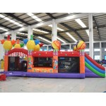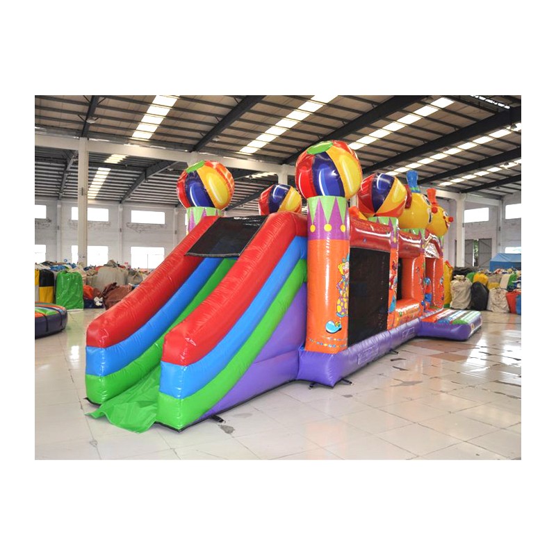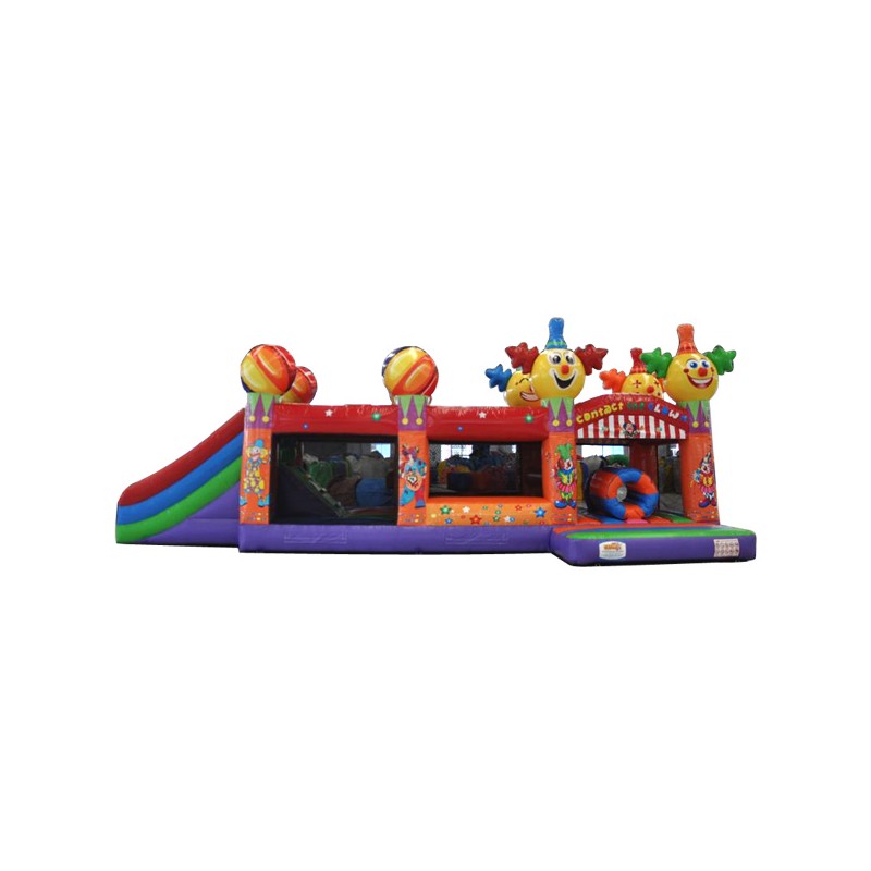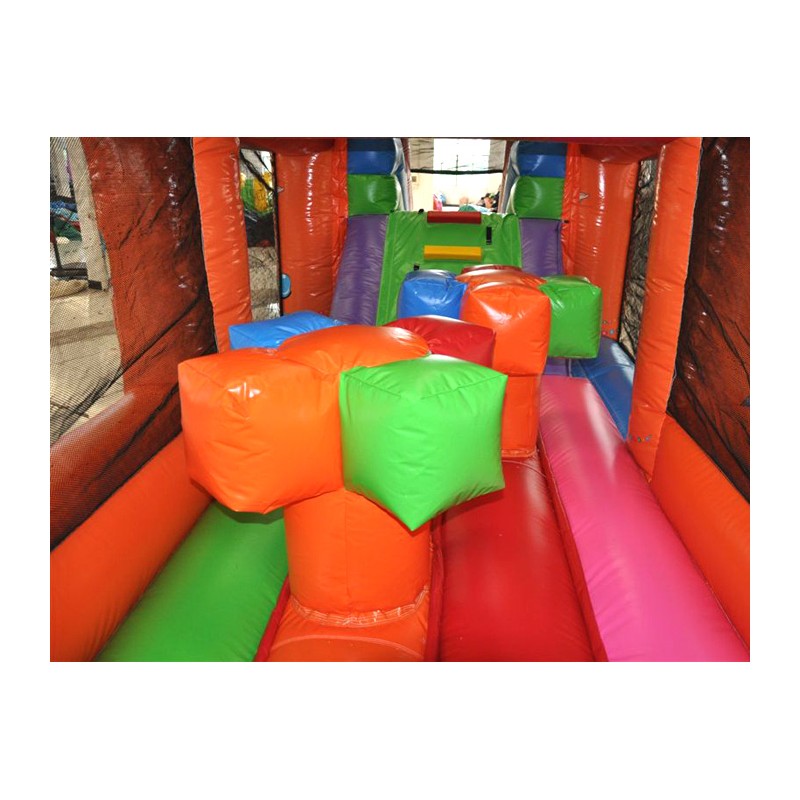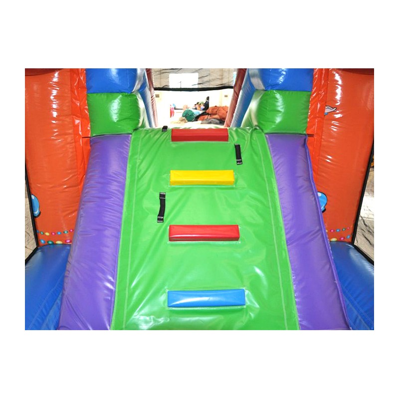 Coloratissimo percorso ad ostacoli con scivolo ed elementi decorativi che richiamano il tema del gonfiabile. Divertente ed impegnativo allo stesso tempo, dotato di reti di protezione perimetrali.Conforme alla UNI EN 14960. Ideale per parchi gioco, parchi divertimento, giochi all'aperto, spiagge, stabilimenti balneari, aree di intrattenimento in generale, ludoteche, aree di ristoro, alberghi, ristoranti e pizzerie, sala feste.