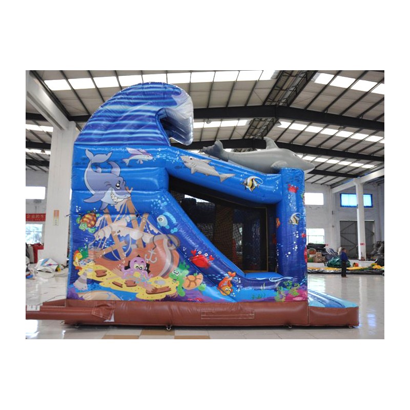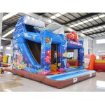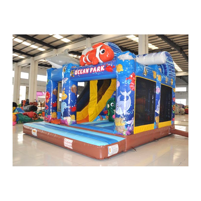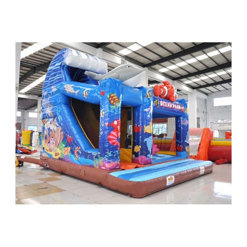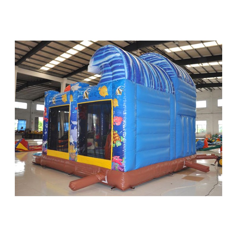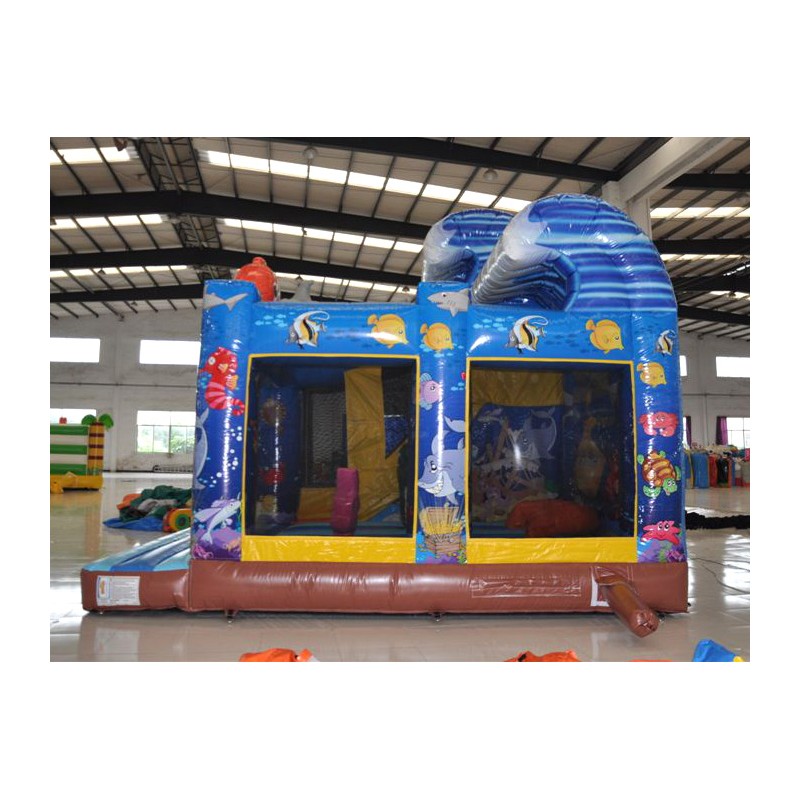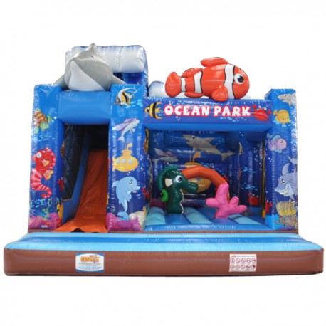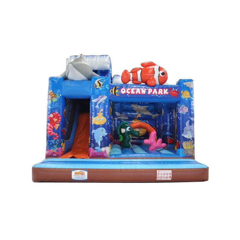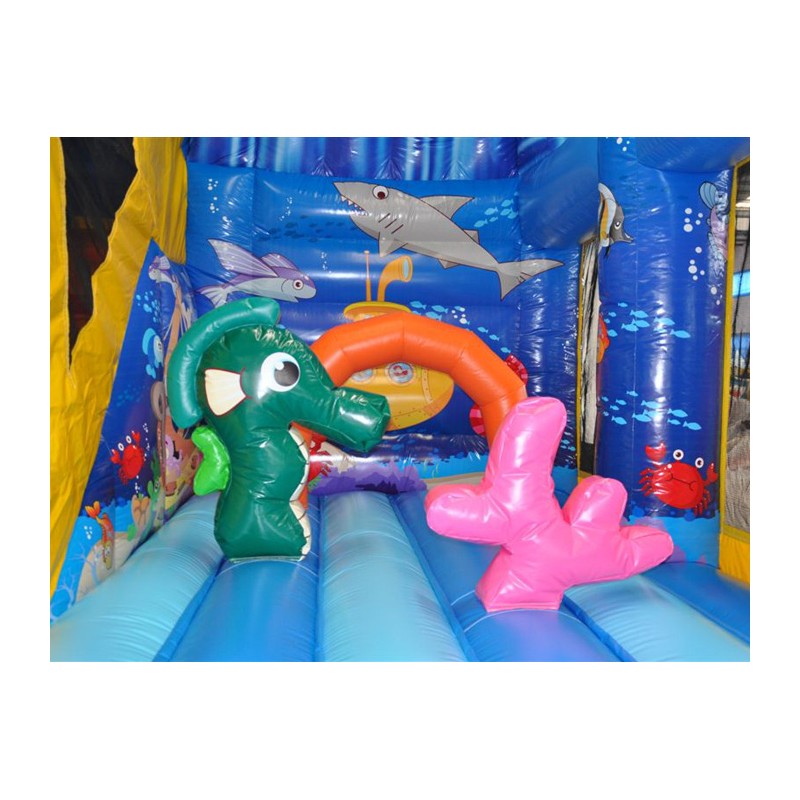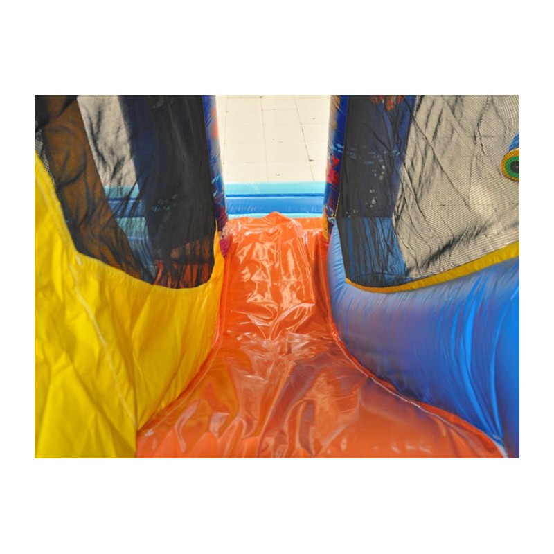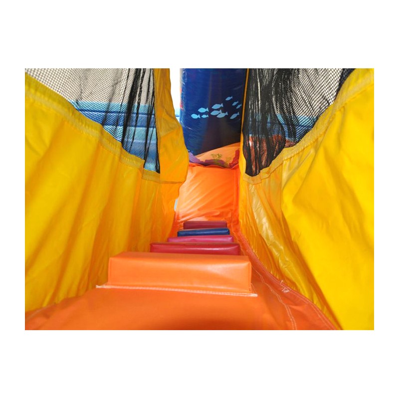 Coloratissimo percorso ad ostacoli con scivolo ed elementi decorativi che richiamano il tema del gonfiabile. Divertente ed impegnativo allo stesso tempo, dotato di reti di protezione perimetrali.Conforme alla UNI EN 14960 Ideale per parchi gioco, parchi divertimento, giochi all'aperto, spiagge, stabilimenti balneari, aree di intrattenimento in generale, ludoteche, aree di ristoro, alberghi, ristoranti e pizzerie, sala feste.