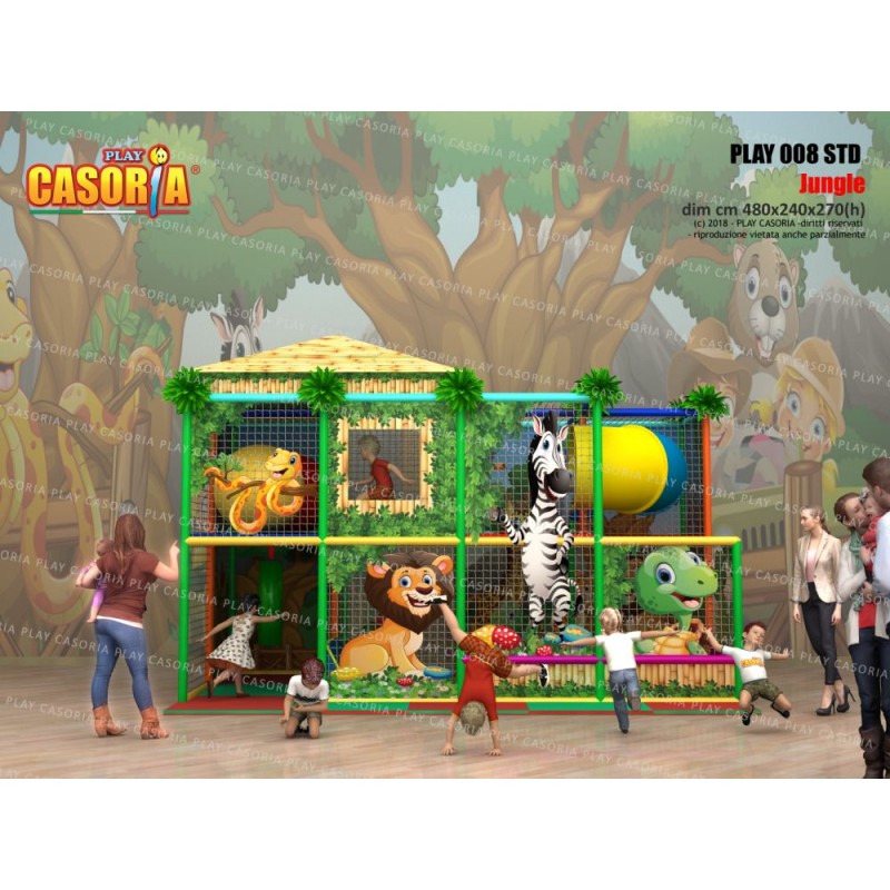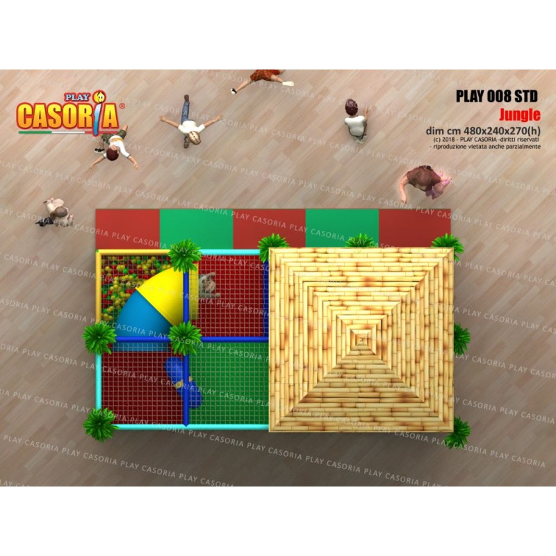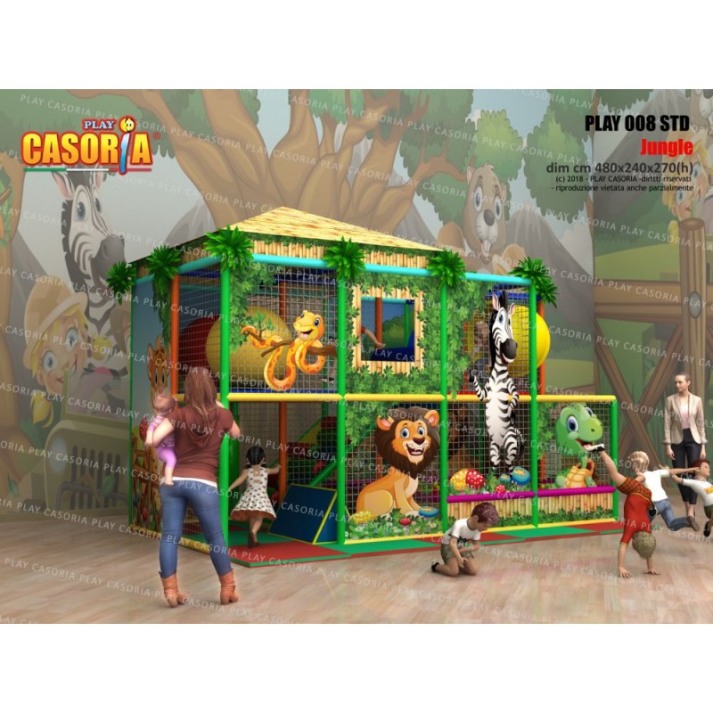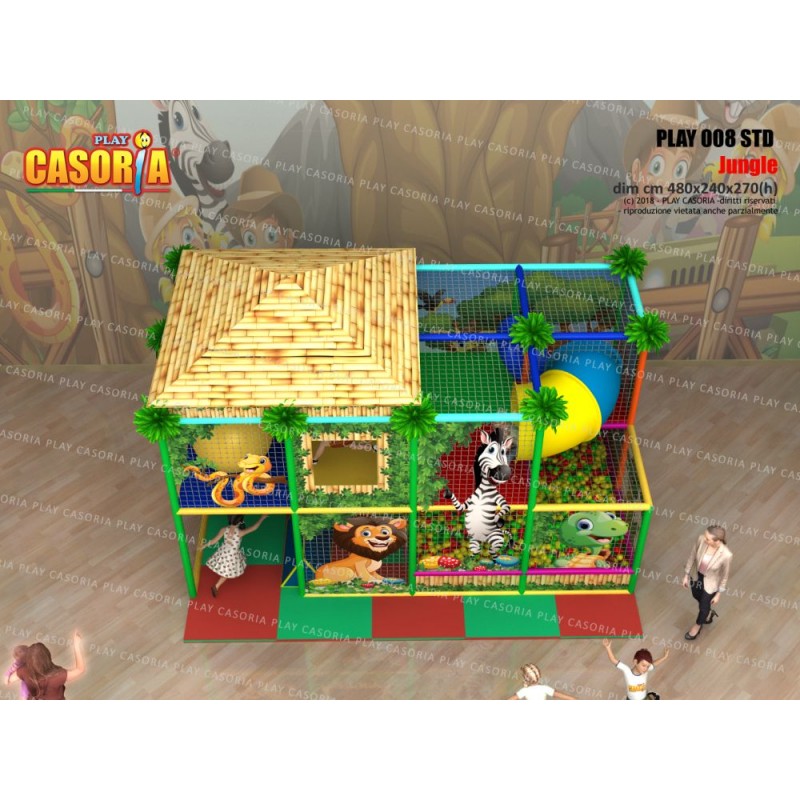 Playground modulare a due piani con piscina delle palline. E' dotato anche di passaggio a tubo che ne aumenta la complessità e il colpo d'occhio. Adatto a chi avendo poco spazio non vuol rinunciare ad un articolo complesso. Playground ideale per ludoteche, parchi gioco, centri commerciali, cinema, bar, ristoranti, pizzerie.