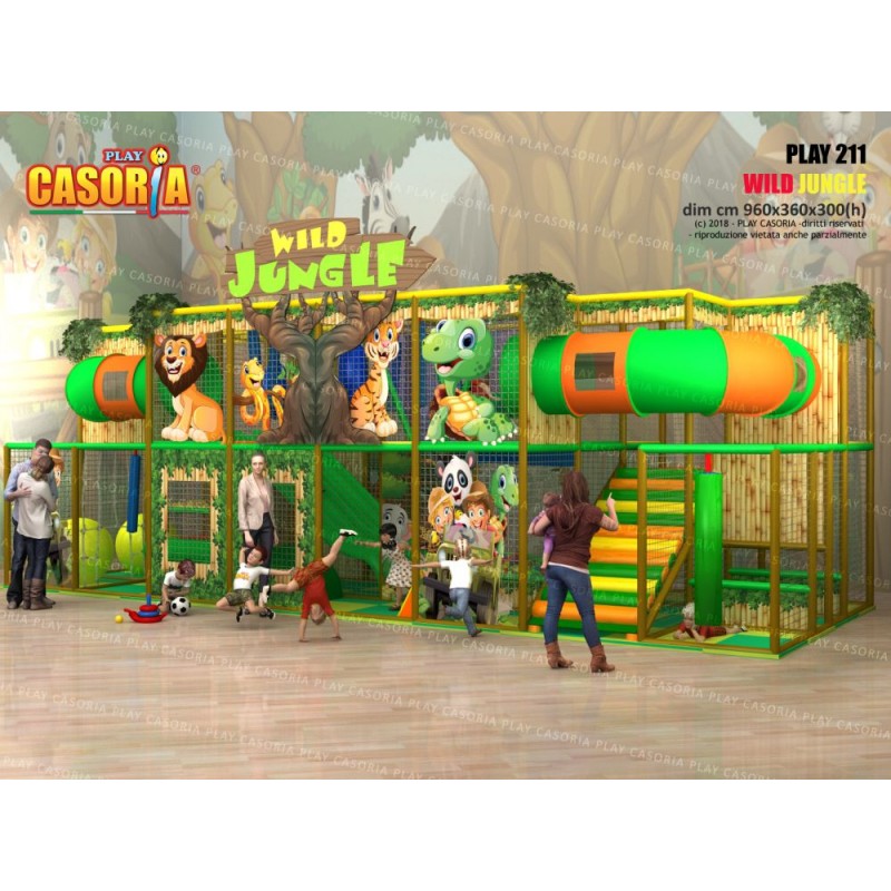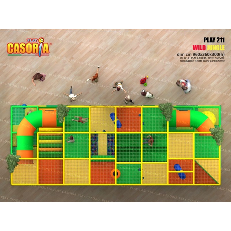 Playground modulare a due piani dalle dimensioni notevoli. Dotato di una grande risalita centrale perpendicolare ai passaggi a tubo, scivoli con uscita nella vasca delle palline, maxi passaggi a tubo, ponte tibetano e altro ancora ! Questo playground è uno dei più completi della serie. Ideale per chi cerca un prodotto capace di ospitare un gran numero di bambini. Playground ideale per ludoteche, parchi gioco, centri commerciali, cinema, bar, ristoranti, pizzerie.