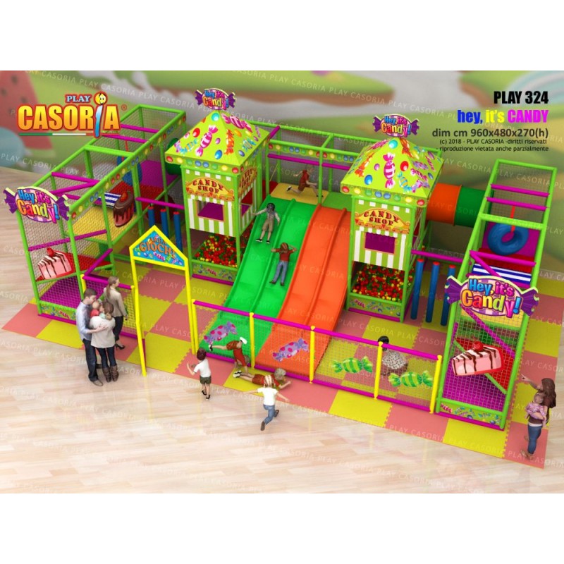 Playground modulare a due piani con scivolo e passaggio a tubo. Completo di vasca delle palline e tanti accessori colorati. Playground ideale per ludoteche, parchi gioco, centri commerciali, cinema, bar, ristoranti, pizzerie.