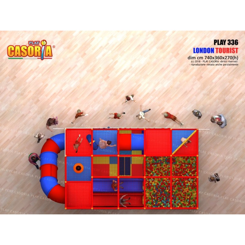 • Playground modulare a due piani con scivolo e passaggio a tubo. Completo di vasca delle palline e tanti accessori colorati. Playground ideale per ludoteche, parchi gioco, centri commerciali, cinema, bar, ristoranti, pizzerie.
