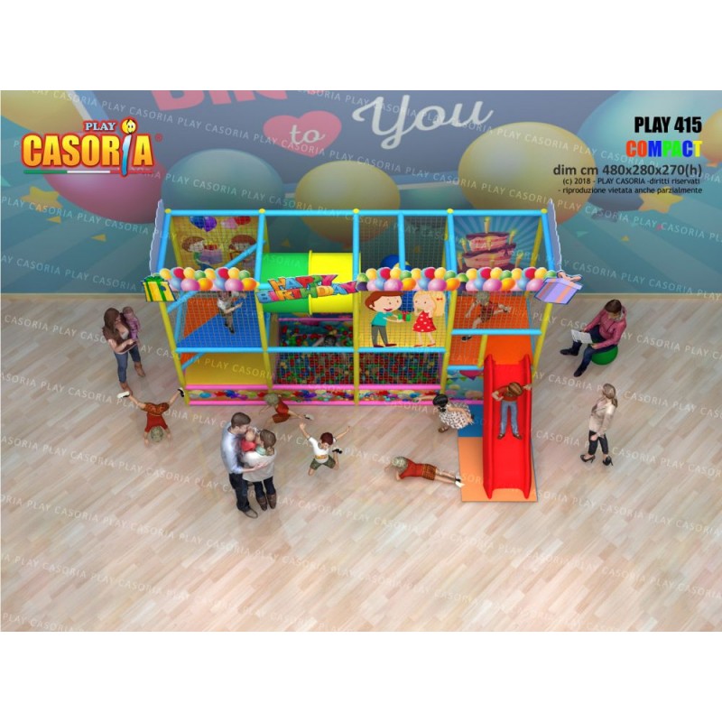 Playground modulare di dimensioni compatte, completo di vasca delle palline e scivolo. Playground per ludoteche, parchi gioco, centri commerciali, cinema, bar, ristoranti, pizzerie. Tematizzazione personalizzabile su richiesta. Ideale per chi non ha moltissimo spazio.
