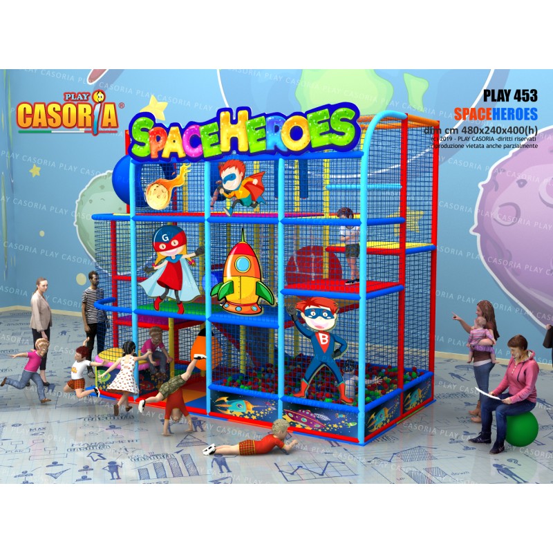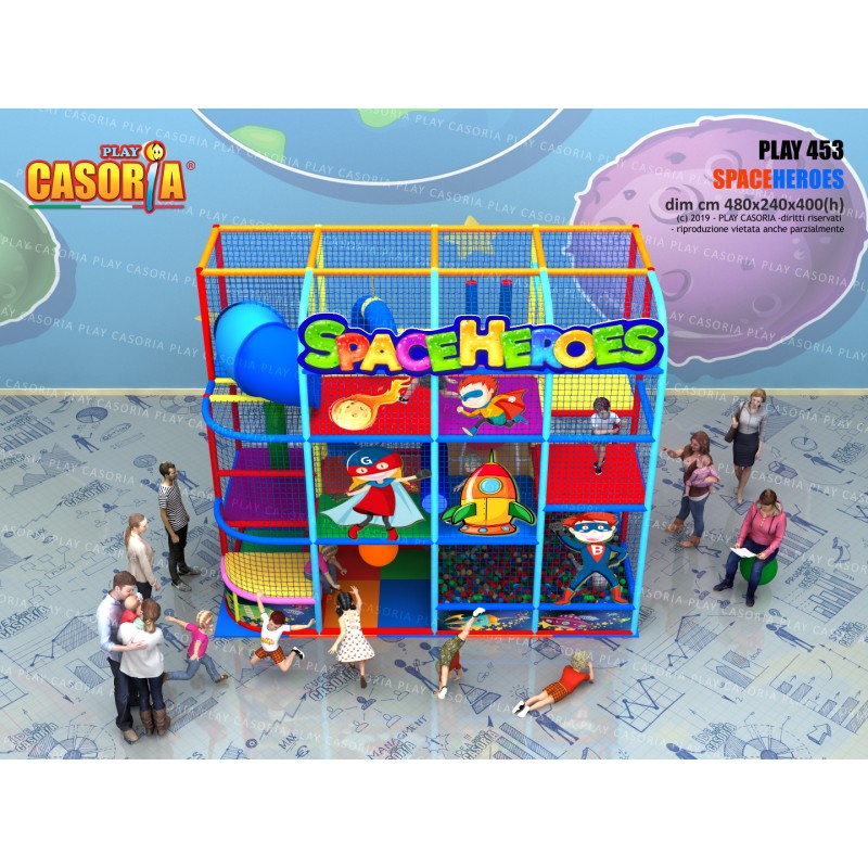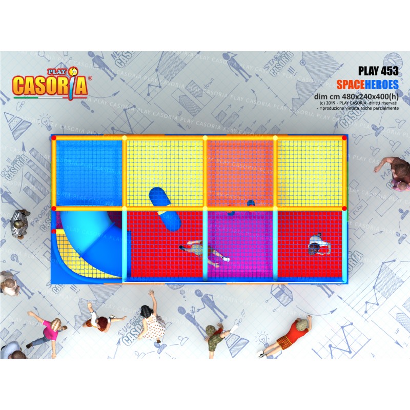 Playground modulare a 3 piani con 1 scivolO. E' dotato anche di passaggio a tubo che ne aumenta la complessità e il colpo d'occhio. Playground ideale per ludoteche, parchi gioco, centri commerciali, cinema, bar, ristoranti, pizzerie. Tematizzazione personalizzabile su richiesta.