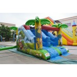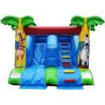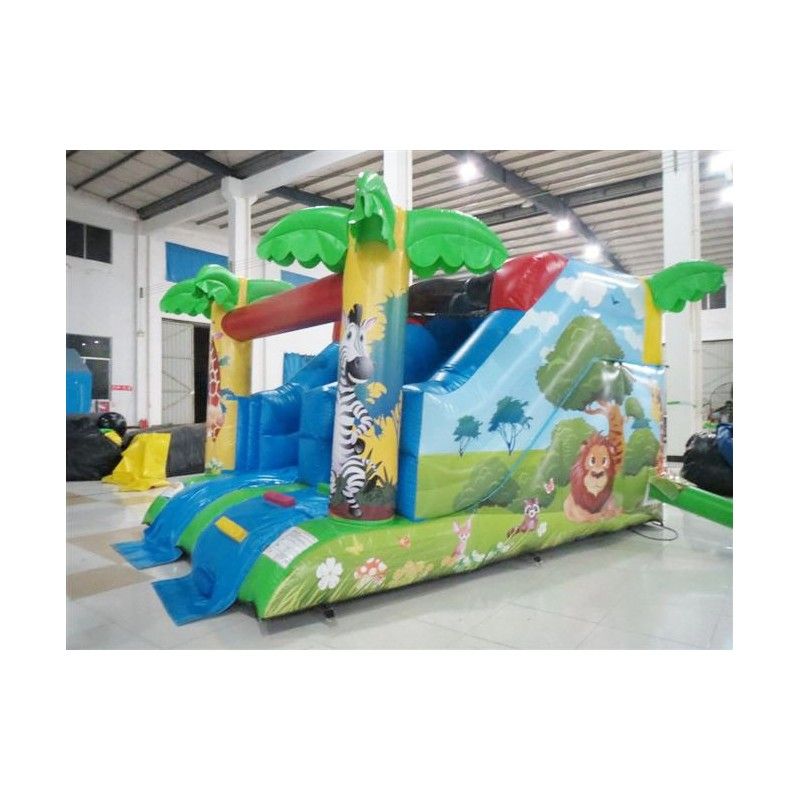 Scivolo gonfiabile Safari colorato e vivace. Accessoriato con quattro palme in rilievo. E' dotato di uno scivolo non eccessivamente veloce completo di rete di protezione nella parte superiore per un gioco in totale sicurezza. Risalita con passamano per una facile arrampicata. Conforme alla UNI EN 14960 Ideale per parchi gioco, parchi divertimento, giochi all'aperto, spiagge, stabilimenti balneari, aree di intrattenimento in generale, ludoteche, aree di ristoro, alberghi, ristoranti e pizzerie, sala feste.
