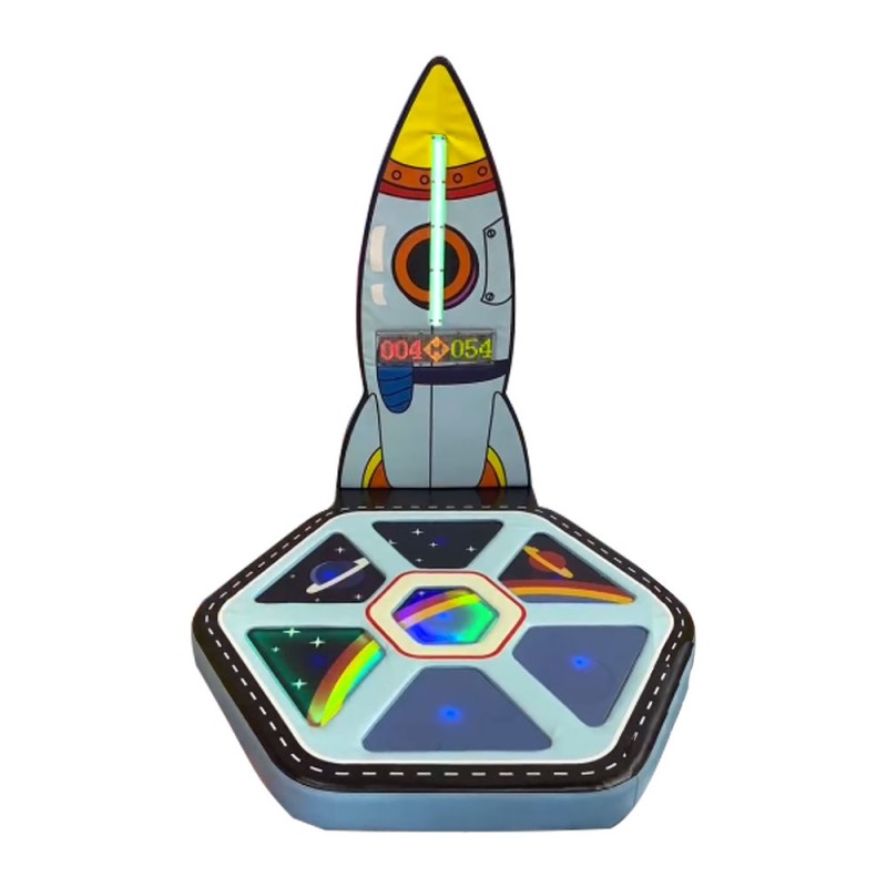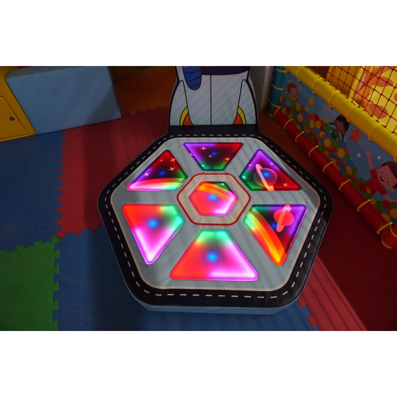 Il Softplay Salterello Space è una piccola postazione dotata di pedana illuminata che i bambini possono seguire a tempo di musica con i loro piedi.