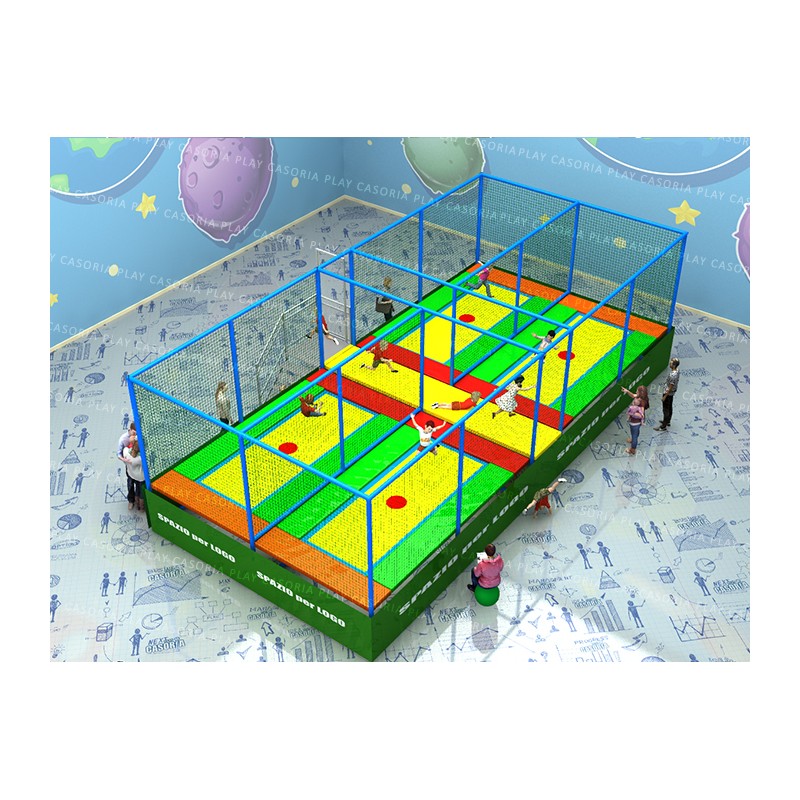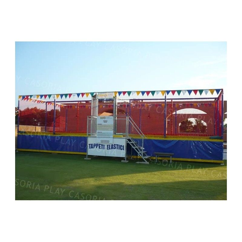 Trampolini "PRO" 1 tappeto con passerella laterale. I tappeti elastici professionali PLAY CASORIA sono sicuri e divertenti. Progettati e realizzati secondo le norme in materia, vengono fabbricati utilizzando solo materiali di prima qualità. Ideali per parchi gioco, centri commerciali, cinema, bar, ristoranti, pizzerie e spazi bimbi. DIVISORI ESCLUSI
