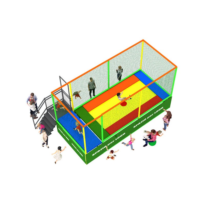 Trampolini "PRO" 1 tappeto con passerella laterale. I tappeti elastici professionali PLAY CASORIA sono sicuri e divertenti. Progettati e realizzati secondo le norme in materia, vengono fabbricati utilizzando solo materiali di prima qualità. Ideali per parchi gioco, centri commerciali, cinema, bar, ristoranti, pizzerie e spazi bimbi. DIVISORI ESCLUSI