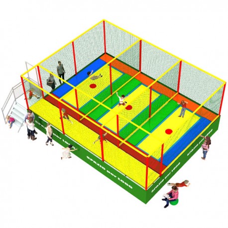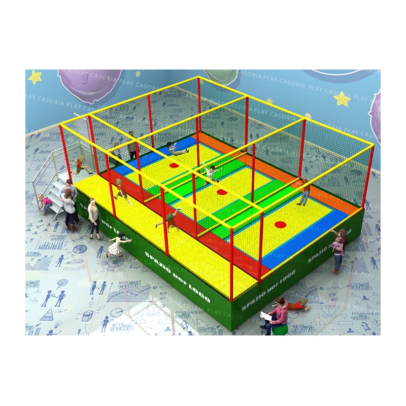 Trampolini "PRO" 1 tappeto con passerella laterale. I tappeti elastici professionali PLAY CASORIA sono sicuri e divertenti. Progettati e realizzati secondo le norme in materia, vengono fabbricati utilizzando solo materiali di prima qualità. Ideali per parchi gioco, centri commerciali, cinema, bar, ristoranti, pizzerie e spazi bimbi. DIVISORI ESCLUSI