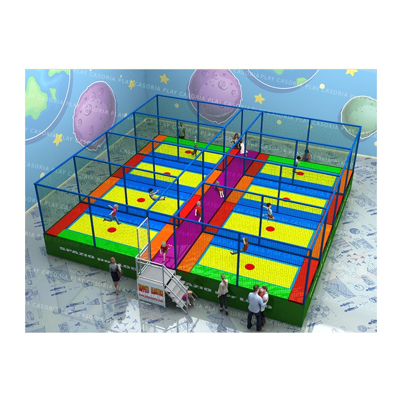Trampolini "PRO" 1 tappeto con passerella laterale. I tappeti elastici professionali PLAY CASORIA sono sicuri e divertenti. Progettati e realizzati secondo le norme in materia, vengono fabbricati utilizzando solo materiali di prima qualità. Ideali per parchi gioco, centri commerciali, cinema, bar, ristoranti, pizzerie e spazi bimbi. DIVISORI ESCLUSI