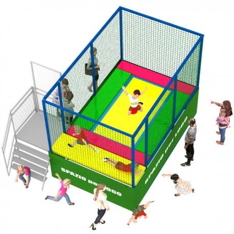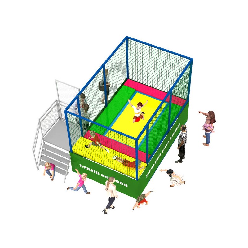 Trampolini elastici professionali "Smart". I tappeti elastici professionali PLAY CASORIA sono sicuri e divertenti. Progettati e realizzati secondo le norme in materia, vengono fabbricati utilizzando solo materiali di prima qualità. Ideali per parchi gioco, centri commerciali, cinema, bar, ristoranti, pizzerie e spazi bimbi. I divisori ed il tetto sono esclusi.