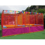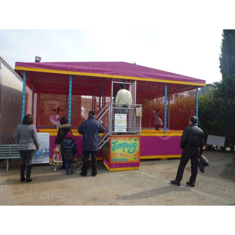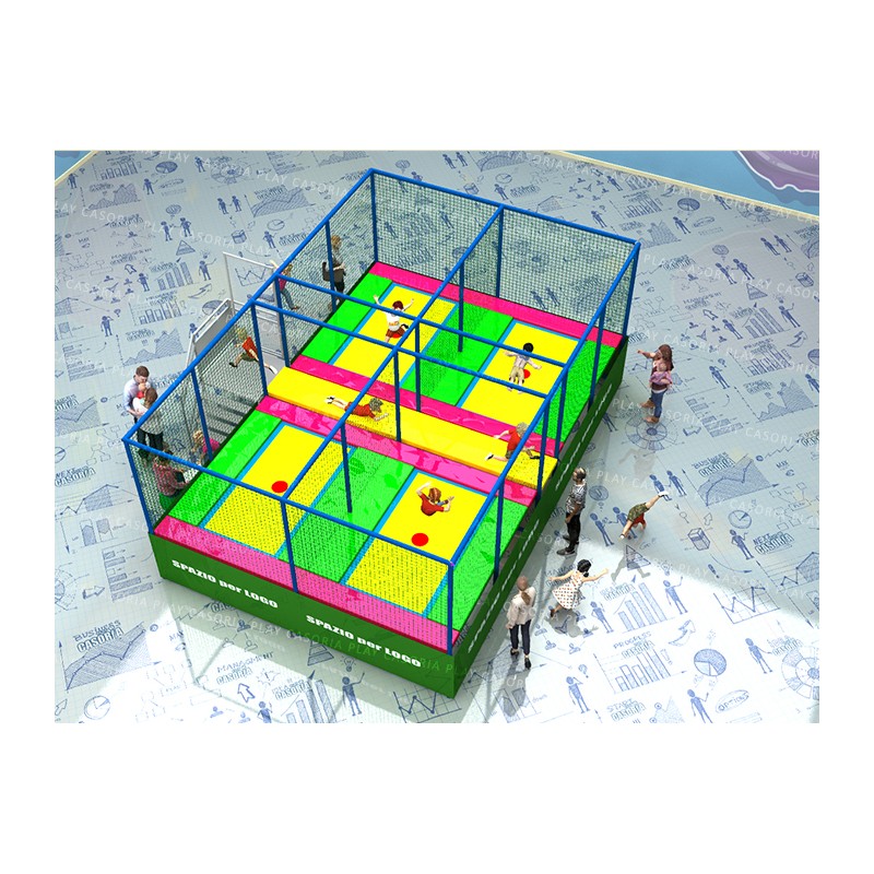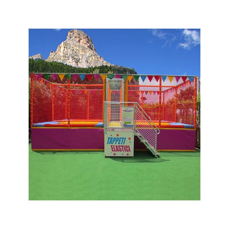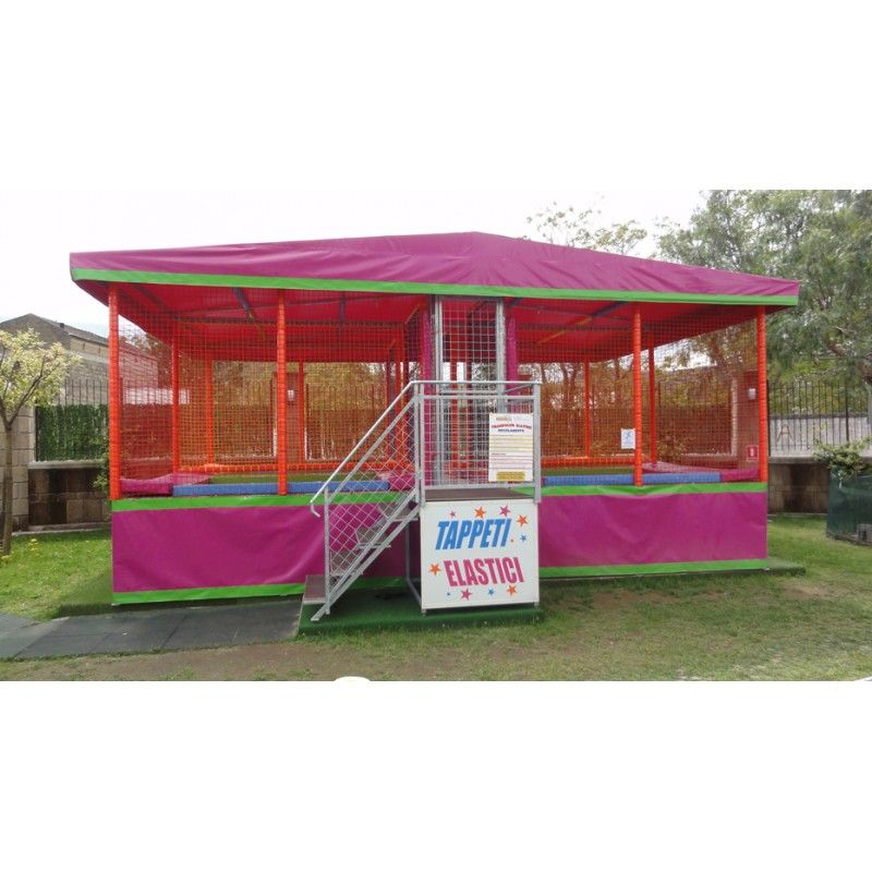 Trampolini elastici professionali "Smart". I tappeti elastici professionali PLAY CASORIA sono sicuri e divertenti. Progettati e realizzati secondo le norme in materia, vengono fabbricati utilizzando solo materiali di prima qualità. Ideali per parchi gioco, centri commerciali, cinema, bar, ristoranti, pizzerie e spazi bimbi. I divisori ed il tetto sono esclusi.