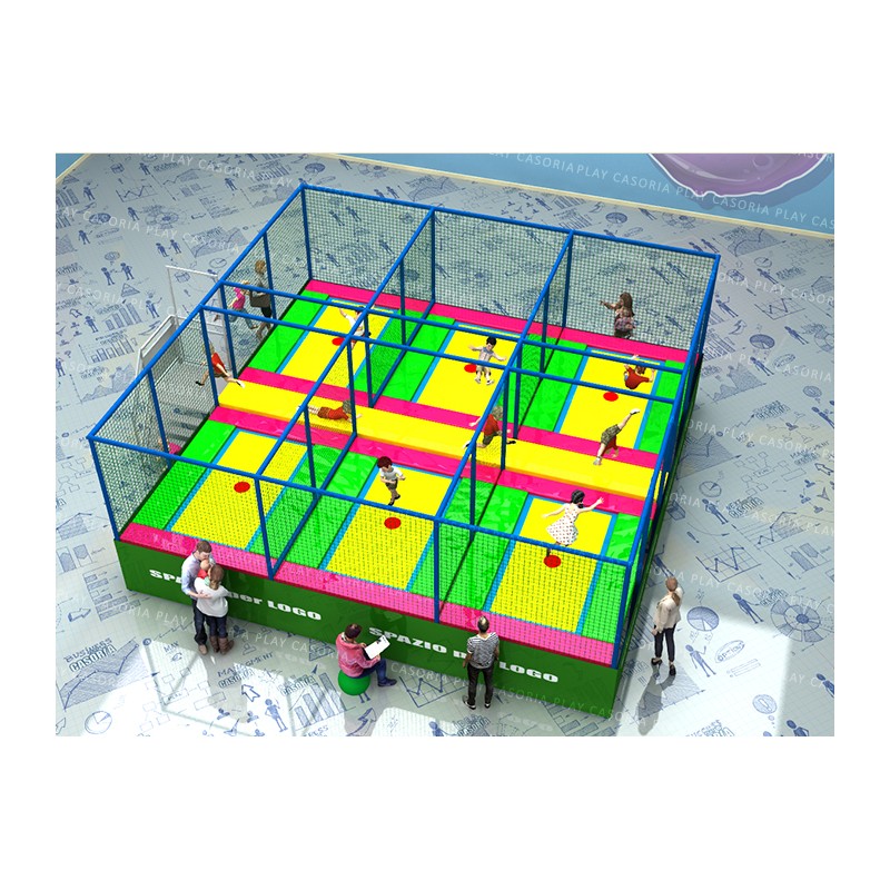 Trampolini elastici professionali "Smart". I tappeti elastici professionali PLAY CASORIA sono sicuri e divertenti. Progettati e realizzati secondo le norme in materia, vengono fabbricati utilizzando solo materiali di prima qualità. Ideali per parchi gioco, centri commerciali, cinema, bar, ristoranti, pizzerie e spazi bimbi. I divisori ed il tetto sono esclusi.