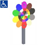 Pannello fiore.Conforme alla Norma UNI EN 1176. Palo in legno lamellare di pino impregnato trattato in autoclave con sali atossici, 80 x 80 mm adatto all'ambiente esterno con possibilità di ancoraggio sia su massetto in c.a che su terreno. Il fiore centrale è in polietilene ad alta densità (HDPE) e completamente riciclabile dello spessore di 15 mm pantografato e colorato in massa. Tutti gli elementi di fissaggio ( viti, dadi, rondelle etc.) sono in acciaio zincato.