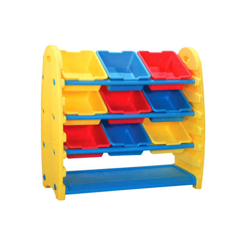 Portaoggetti vivace e colorato con 6 vaschette in plastica in 3 colorazioni. Facile da montare, è ideale per consentire ai bambini di riporre i loro giocattoli o organizzare materiali vari.