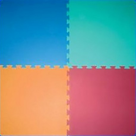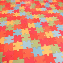 Pavimentazione antinfortunistica, mattonella ad incastro puzzle bicolore (Rosso/Blu, Verde/Arancio, Giallo/Azzurro) progettata e realizzata per proteggere ed isolare dal pavimento sottostante.