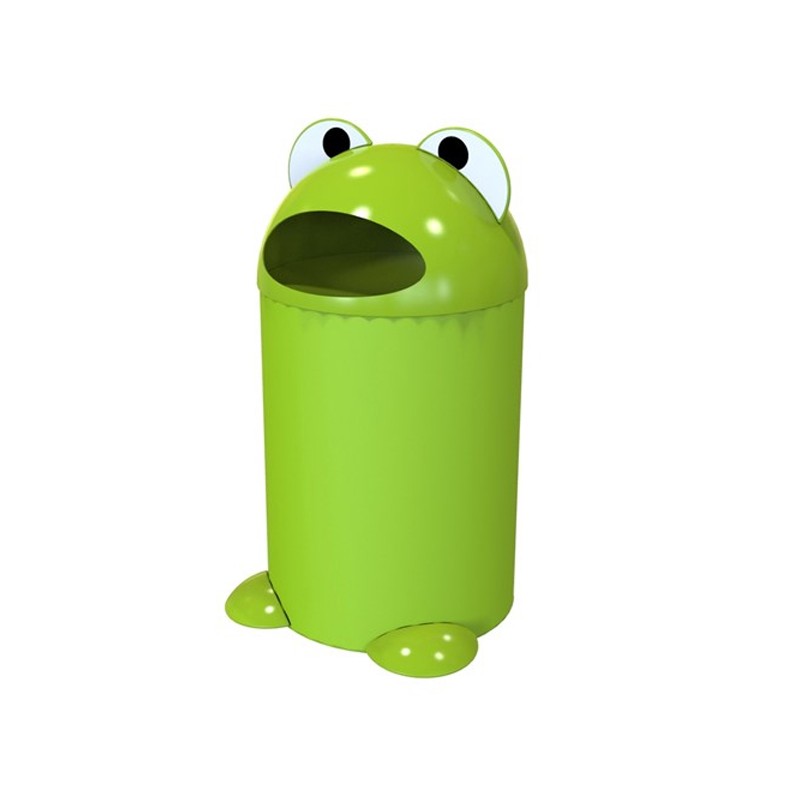 Cestino Baby Frog per rifiuti. Bellissimo portarifiuti con le sembianze di una rana che lo rende simpatico per i bambini restando allo stesso tempo semplice ed essenziale. Ideale per parchi gioco, aree verdi, agriturismi, percorsi avventura, centri commerciali e parchi pubblici.