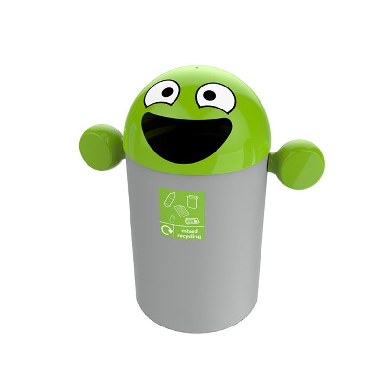 Cestino Best Buddy per rifiuti. Bellissimo portarifiuti con una simpatica faccina che piacerà tanto ai bambini. Semplice ed essenziale è l'ideale per parchi gioco, aree verdi, agriturismi, percorsi avventura, centri commerciali e parchi pubblici.