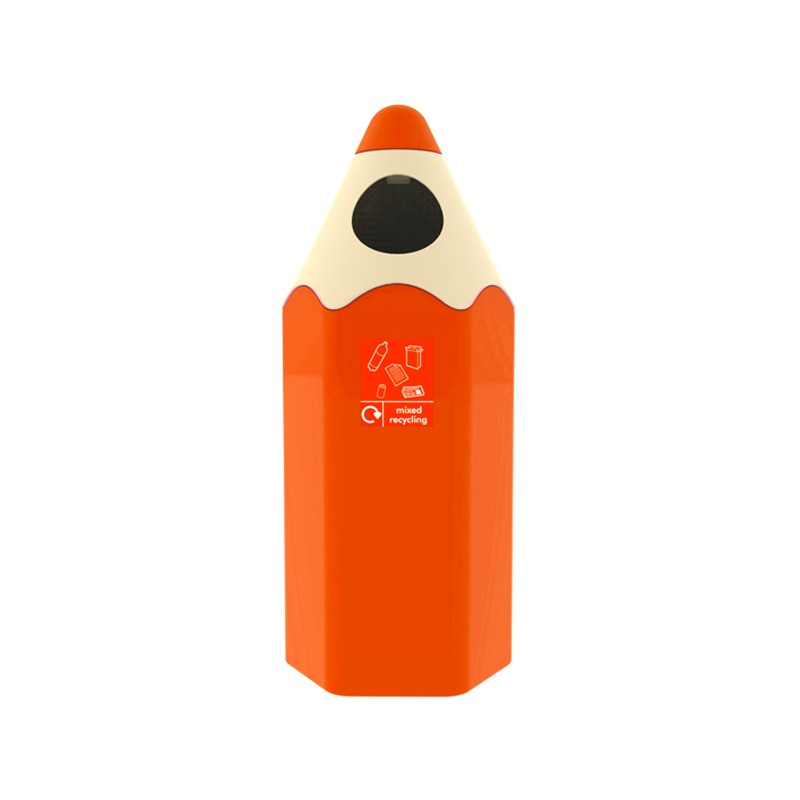 Cestino Matita per rifiuti. Bellissimo portarifiuti con le sembianze di una matita che lo rende simpatico per i bambini restando allo stesso tempo semplice ed essenziale. L'ideale per parchi gioco, aree verdi, agriturismi, percorsi avventura, centri commerciali, parchi pubblici e scuole.