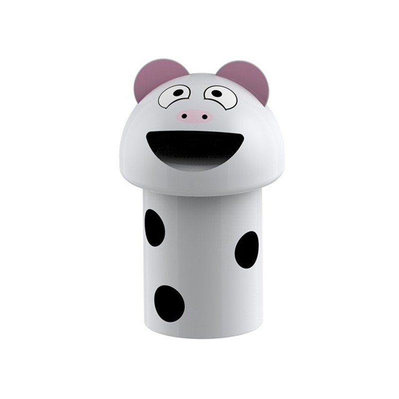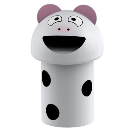 Cestino Mucca per rifiuti. Bellissimo portarifiuti con le sembianze di una mucca che lo rende simpatico per i bambini restando allo stesso tempo semplice ed essenziale. Ideale per parchi gioco, aree verdi, agriturismi, percorsi avventura, centri commerciali e parchi pubblici.