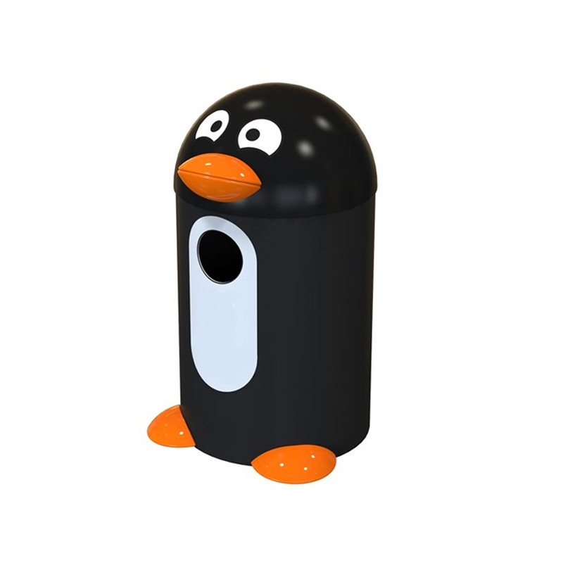 Cestino Pingu per rifiuti. Bellissimo portarifiuti con le sembianze di un pinguino che lo rende simpatico per i bambini restando allo stesso tempo semplice ed essenziale. Ideale per parchi gioco, aree verdi, agriturismi, percorsi avventura, centri commerciali e parchi pubblici.