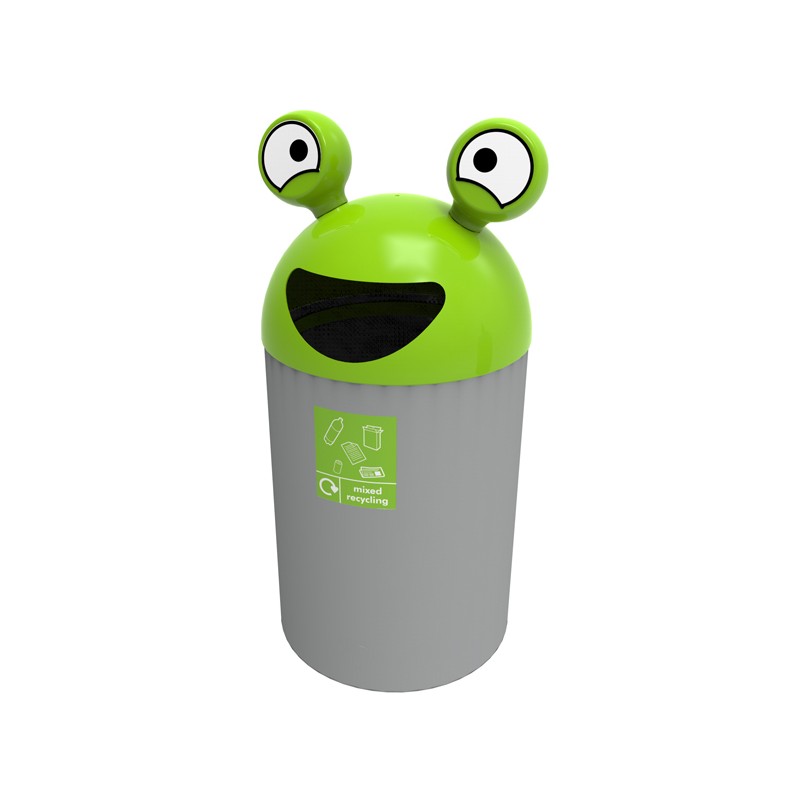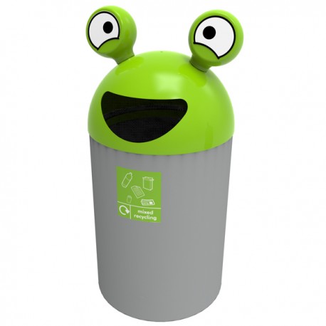 Cestino Space Buddy per rifiuti. Bellissimo portarifiuti con una simpatica faccina che piacerà tanto ai bambini. Semplice ed essenziale è l'ideale per parchi gioco, aree verdi, agriturismi, percorsi avventura, centri commerciali e parchi pubblici.