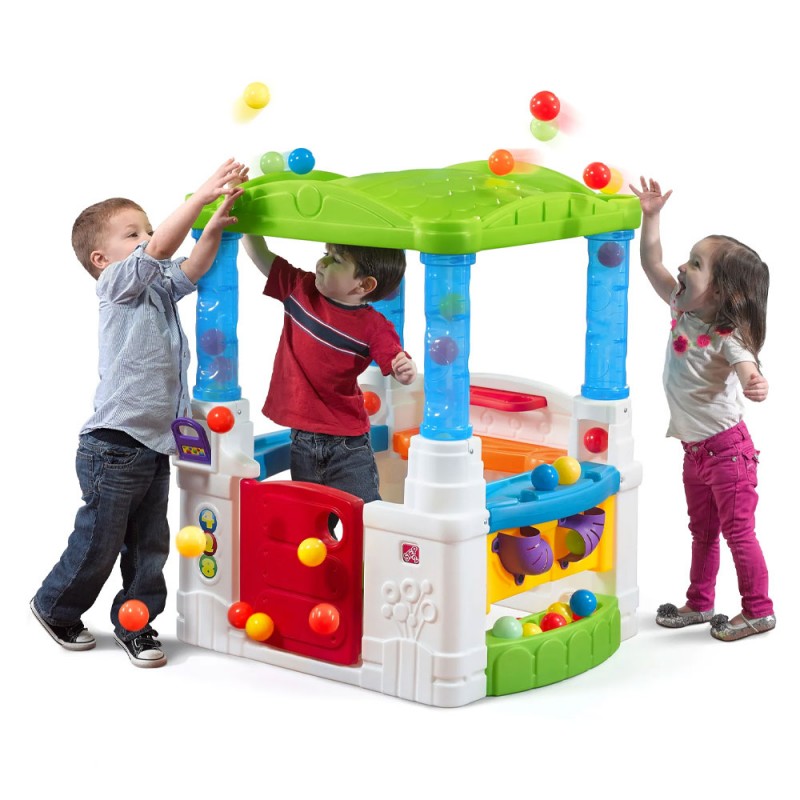 La Wonderball Fun House è una casetta colorata e interattiva, perfetta per il gioco sia all’interno che all’esterno. I bambini possono lanciare le palline sul tetto e osservare il loro percorso tra tubi e canali, accompagnati da un divertente tintinnio. Ogni lato della casetta offre spazi in cui inserire le palline per farle scorrere lungo i percorsi integrati, stimolando la coordinazione e la curiosità.