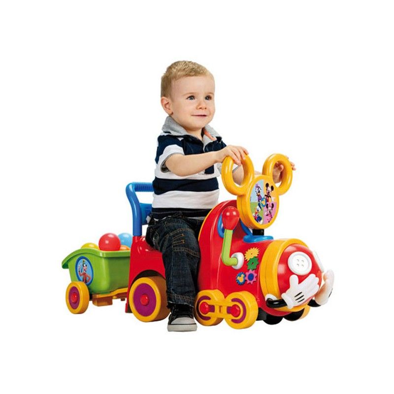 Il Trenino Choo Choo di Mickey Mouse è il fedele compagno del tuo bambino nei suoi primi passi. Da cavalcare o da spingere! Sotto il sedile un pratico vano per riporre piccoli giocattoli e pannello multi attività sul cruscotto. Dotato di fari e clacson che vanno a Batteria. N.B. Vagone non incluso