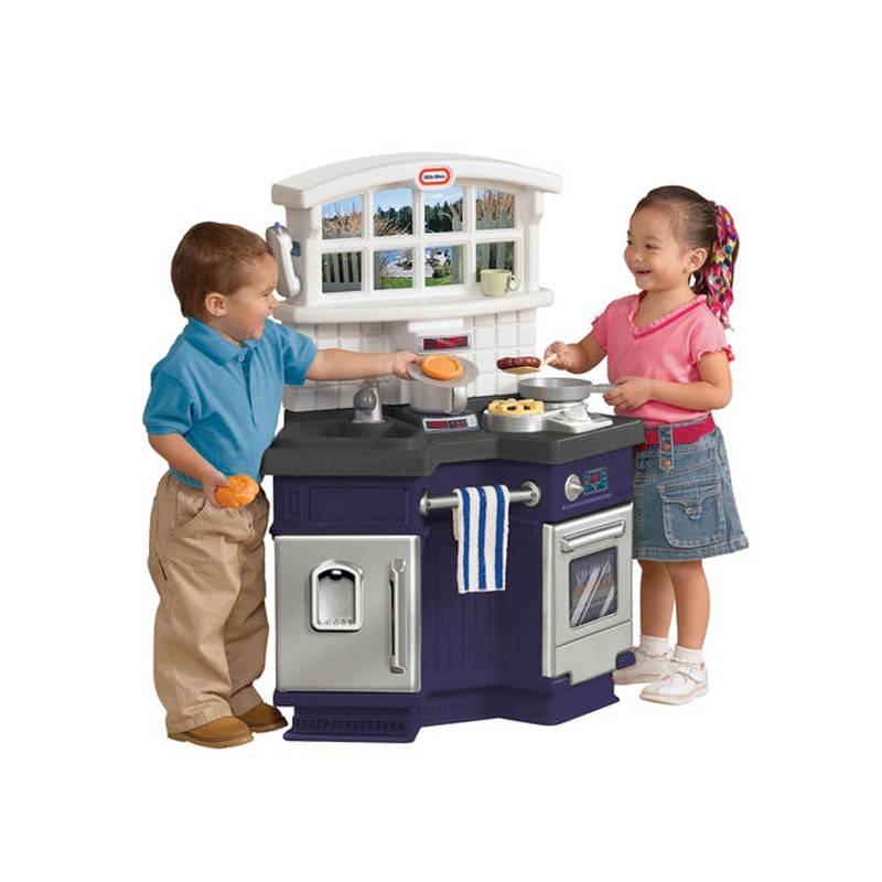 Cucina realizzata in un perfetto design da casa di campagna dotata di lavandino, portasciugamani, forno, frigorifero e piano cucina in granito, fornelli con effetti sonori. Dimensioni: cm. 74 x 36 x 98 (h)