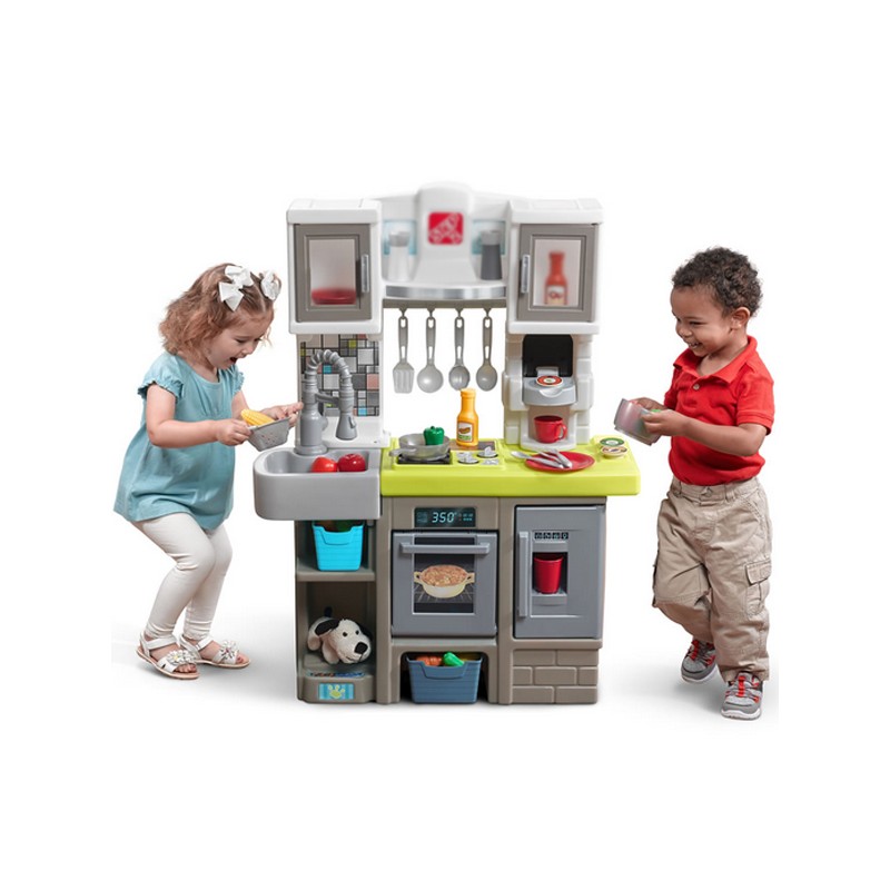 Include un lavello modellato con rubinetto, porte del frigorifero e del forno funzionanti e molto altro ancora. Il bruciatore elettronico del fornello si accende e produce veri e propri rumori di cottura e sfrigolio. Preparate una tazza di caffè finta con la caffettiera monodose e le cialde di caffè realistiche. Ganci per appendere, contenitori e armadietti per tenere tutti gli accessori a portata di mano Realizzato con una struttura resistente e facile da pulire, è destinato a durare nel tempo.