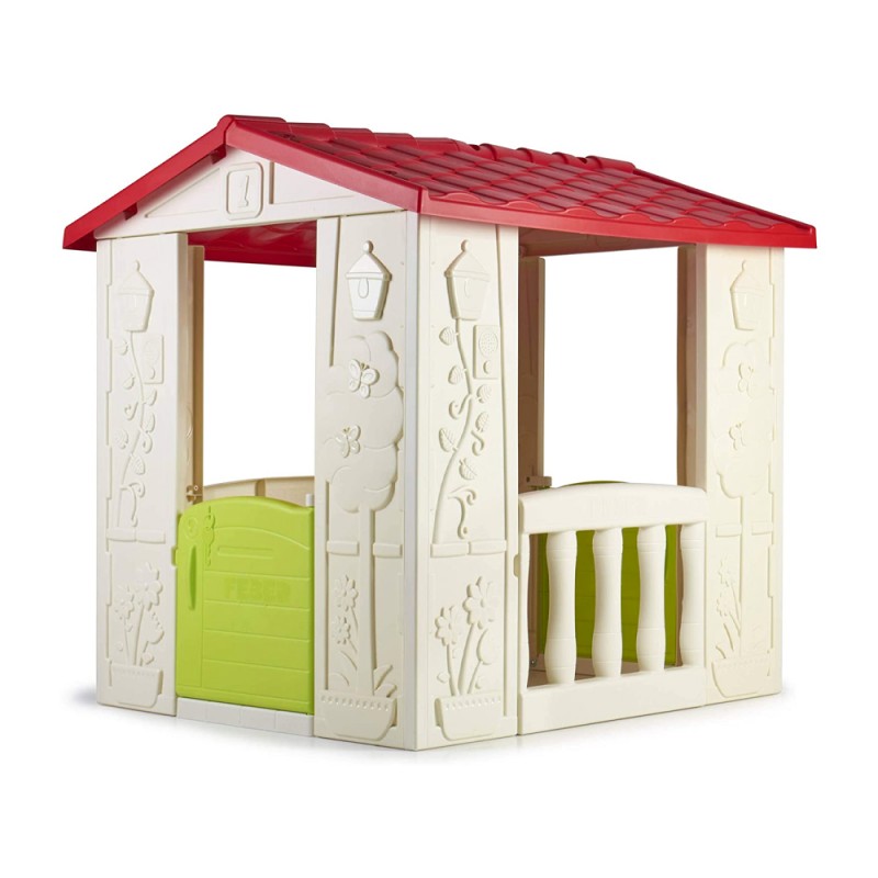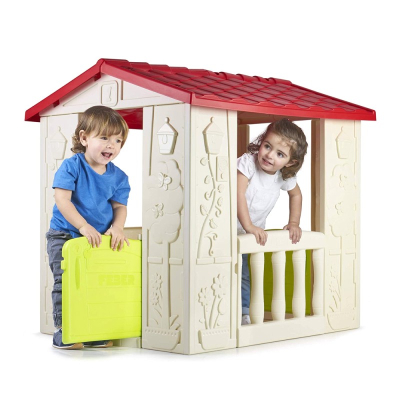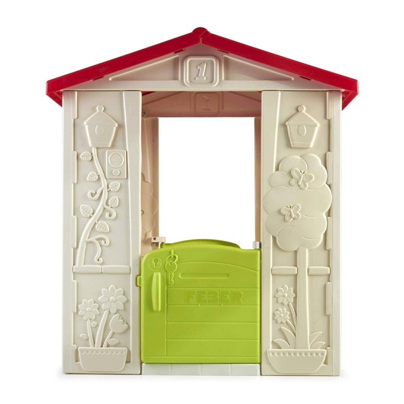 Happy House è una casetta costituita da 2 ingressi, anteriore e posteriore, con porta con maniglia e fessura per la chiave e cassetta delle lettere. Dispone di 2 balconi laterali e di una facciata ricca di dettagli.