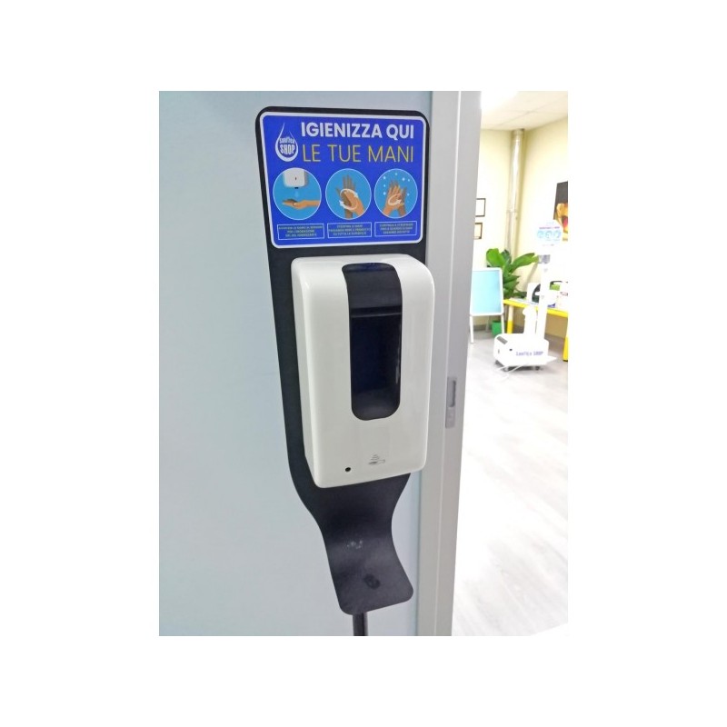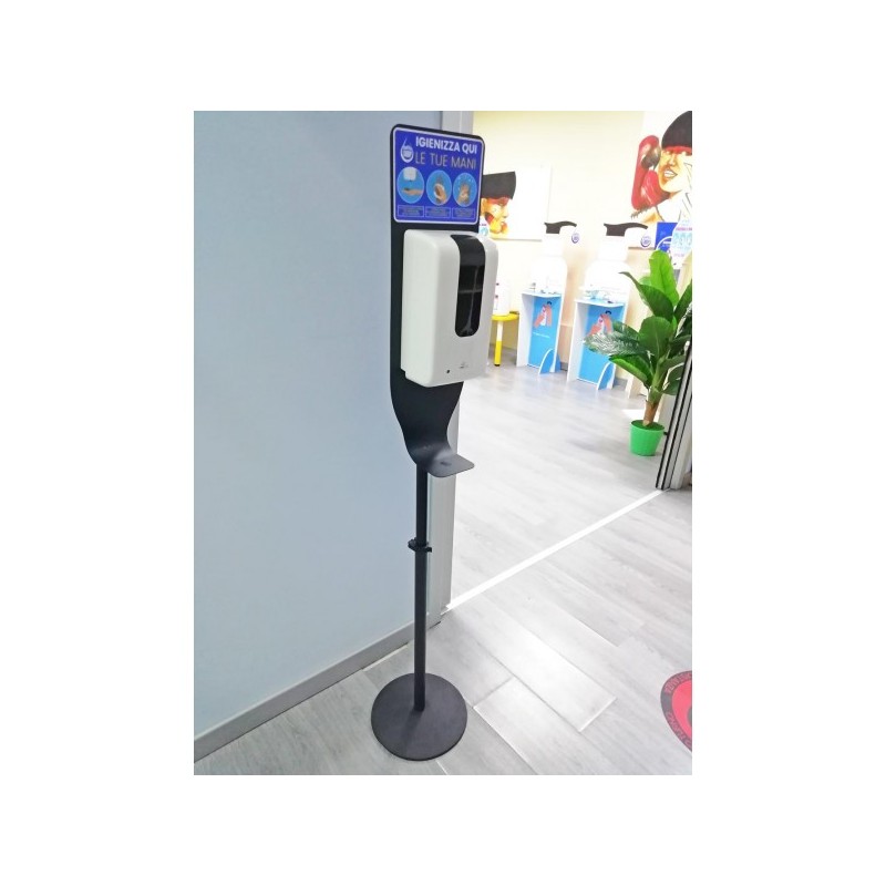 Dispenser automatico per igienizzante gel mani con piantana. Utilizzabile con 3 tipologie di liquido: GEL - SCHIUMA - DETERGENTE LIQUIDO