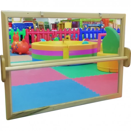• Specchio primi passi. Bellissimo specchio per i bambini più piccoli che iniziano le loro prime esperienze in autonomia. Lo specchio primi passi è equipaggiato di una barra orizzontale che consente ai bambini di restare saldamente aggrappati mentre imparano a stare in piedi e a muoversi da soli. Dim: cm 130x80 (h)