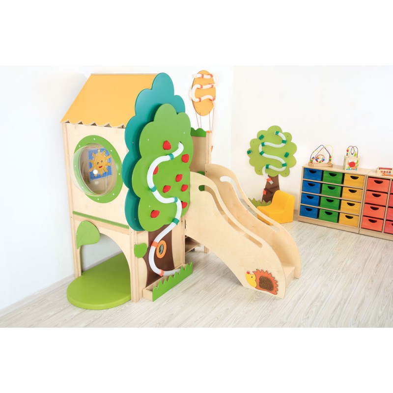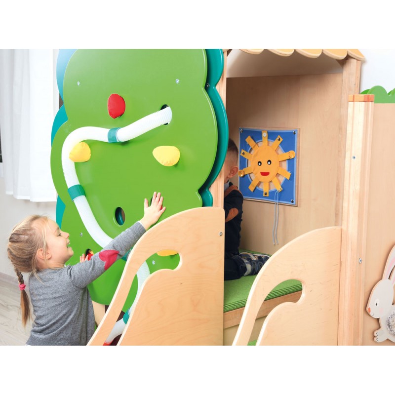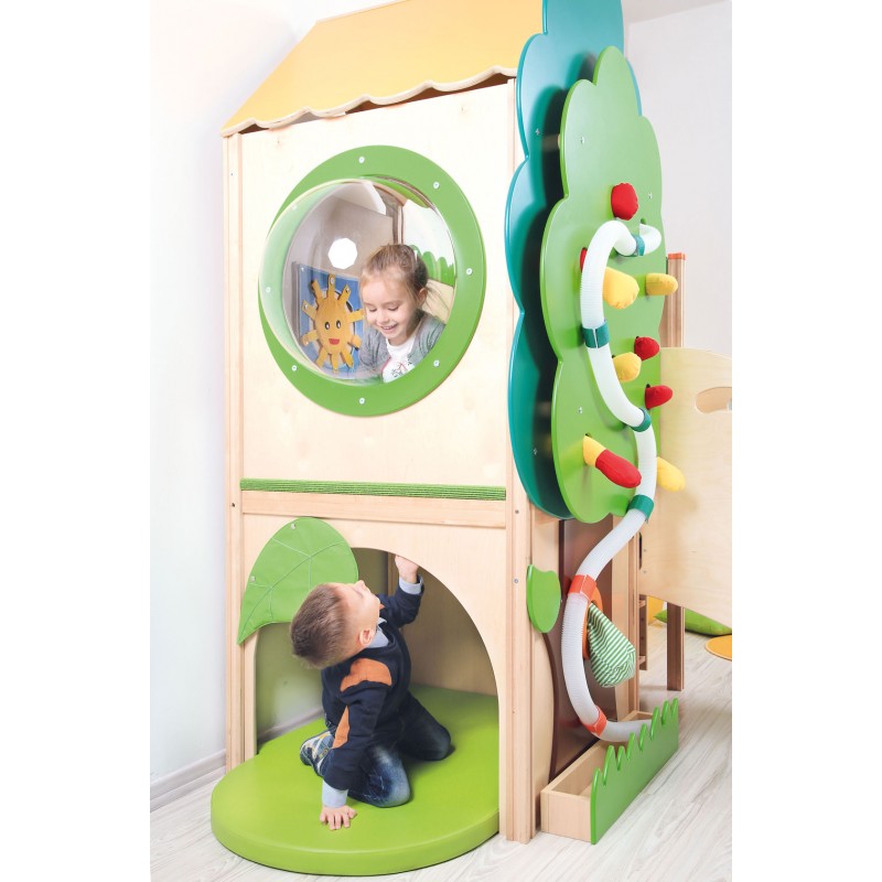La casa sull'albero offrirà un sacco di divertimento attraverso l'esercizio. Elementi aggiuntivi e applicazioni sensoriali stimolano i sensi del tatto e della vista e sviluppano la coordinazione visivo-motoria.