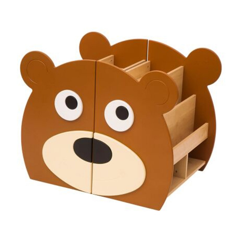 Mobile libreria/portariviste in legno agglomerato a forma di orsetto. Ideale per scuola infanzia, nido, ludoteca, aree giochi.