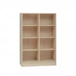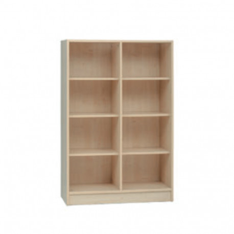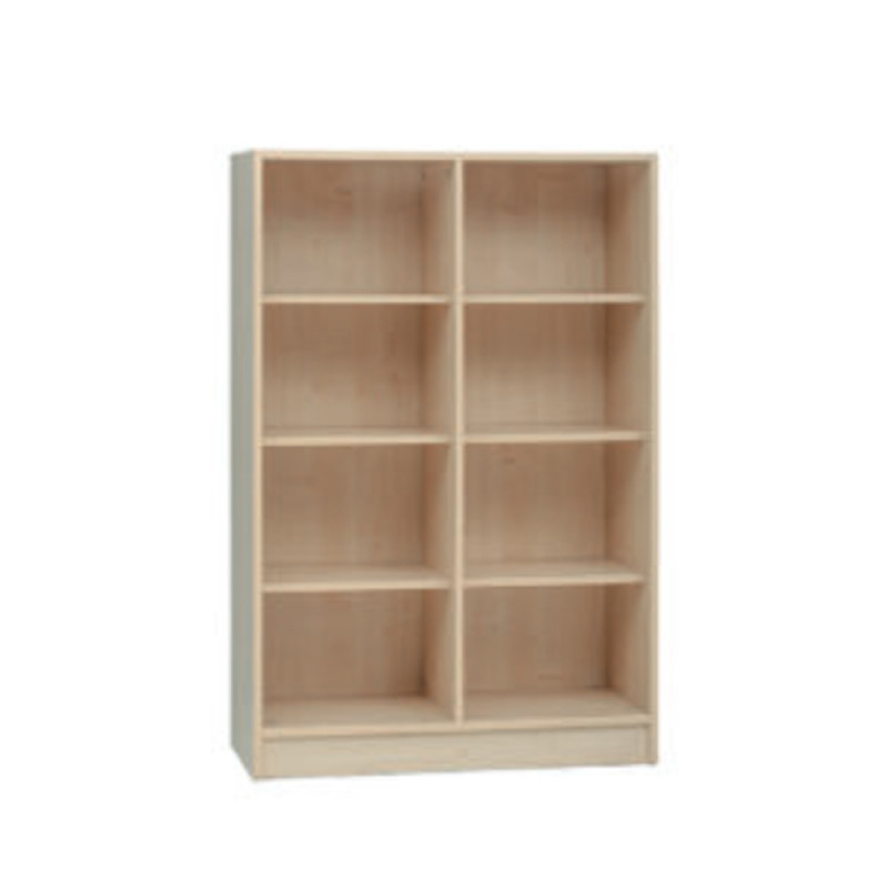 Armadio a giorno realizzato in legno nobilitato chiaro, dotato di divisorio centrale e 6 ripiani spaziosi. Una soluzione funzionale per organizzare materiali scolastici, giochi, libri e oggetti vari. Grazie al design semplice e alla struttura aperta, si integra perfettamente in aule, ludoteche e ambienti educativi.