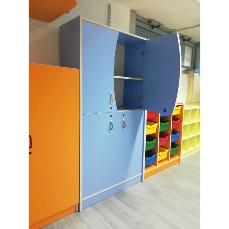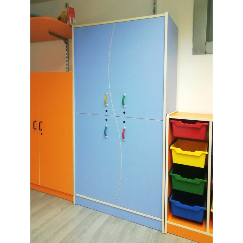 L'armadio Onda alto con 4 ante è una soluzione pratica ed elegante per ambienti scolastici, sportivi o ricreativi. Grazie alla sua altezza maggiorata, offre ancora più spazio per riporre materiali e oggetti personali in modo ordinato e sicuro.