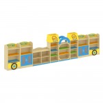 Mobile composizione AUTOBUS 2, composto da armadi funzionali e pratici, una moltitudine di cassetti e mensole esterne che aiutano la sistemazione di materiali didattici o giocattoli. Bellissima composizione colorata con cassetti a scorrimento di facile apertura e chiusura. Ideale per scuole, ludoteche e nidi.