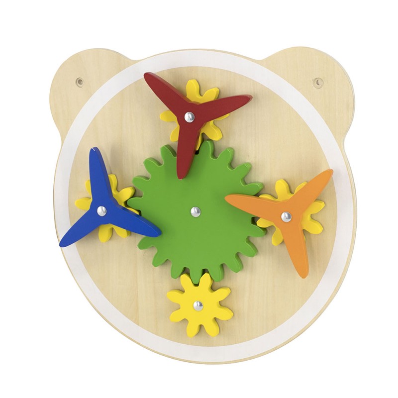 Pannello eliche con diversi elementi movibili e rotanti per favorire le capacità di apprendimento e di ragionamento dei bambini.