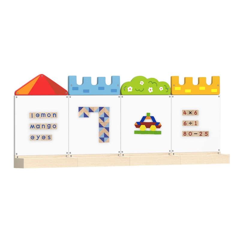 Set pannelli magnetici Castello. Questo set è composto da pannelli magneti ai quali si possono applicare diverse tessere magnetiche con temi fantasiosi per favorire le capacità di apprendimento e di ragionamento dei bambini.