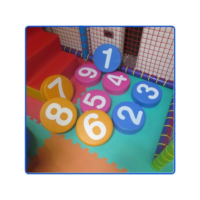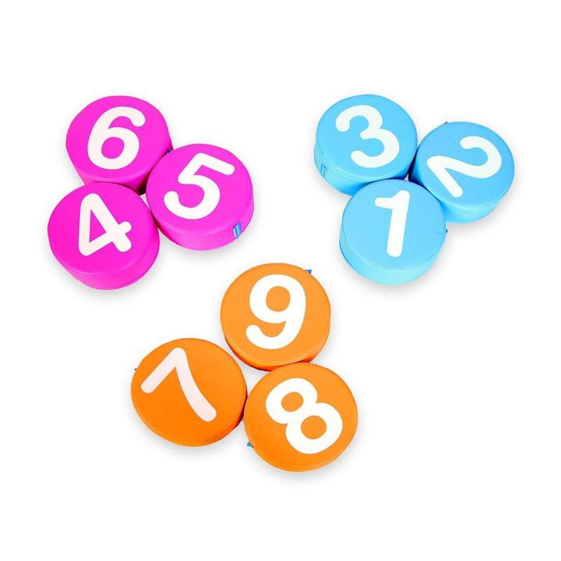 Set 9 numeri soft è costituito da morbidi cuscini di forma circolare, con stampe di numeri dall’ 1 al 9, utilizzabili per l'educazione dei bambini ed un approccio divertente alla matematica.