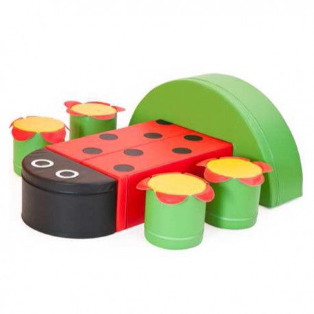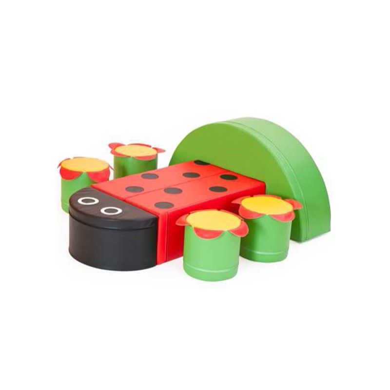 Il set di blocchi in schiuma Ladybird è un set di forme in schiuma stimolanti che soddisferà anche i bambini più esigenti. Una bellissima forma nell'affascinante versione di una coccinella. Il set comprende, tra gli altri, quattro pouf che, abbinati alle lunghe travi, possono fungere da sedute e da tavolo. Gli elementi sono realizzati in schiuma, resistente alla deformazione e durevole. All'esterno, ognuno di essi è dotato di una copertura con cerniera. Realizzato in materiale Meditap privo di ftalati, che offre una superficie facilmente lavabile, il set è facile da pulire, colorato e stimolante.