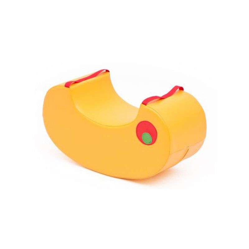 Seduta cavalcabile a forma di fagiolo di colore giallo. Realizzato in morbida schiuma poliuretanica e rifinito in pelle artificiale. Facile da pulire. Il rivestimento contiene una cerniera nascosta ed è rimovibile. L'uso di cuciture rinforzate prolunga la durata del prodotto e uno speciale metodo di copertura della cerniera garantisce un gioco sicuro, senza il rischio di impigliarsi nella parte metallica. La precisione degli orli elimina l'effetto sgualcitura del materiale.
