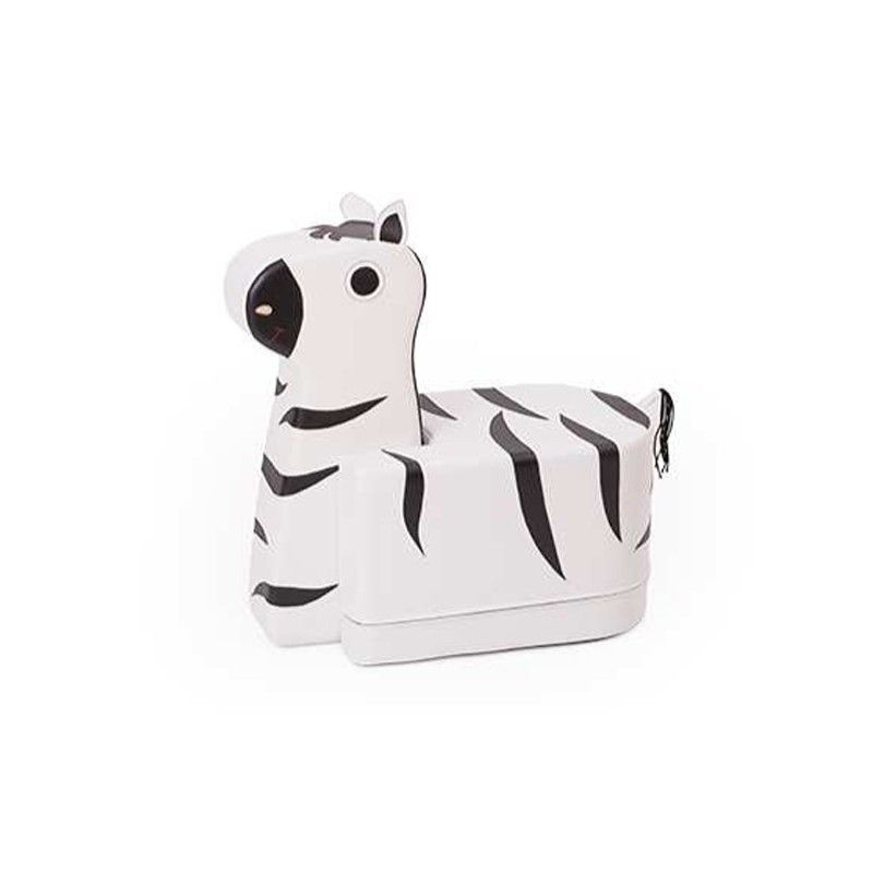 Simpatico animaletto a forma di zebra, realizzato in morbida schiuma poliuretanica e rifinito in pelle artificiale. Facile da pulire. Il rivestimento contiene una cerniera nascosta ed è rimovibile. L'uso di cuciture rinforzate prolunga la durata del prodotto, uno speciale metodo di copertura della cerniera garantisce un gioco sicuro, senza il rischio di impigliarsi nella parte metallica. La precisione degli orli elimina l'effetto sgualcitura del materiale.
