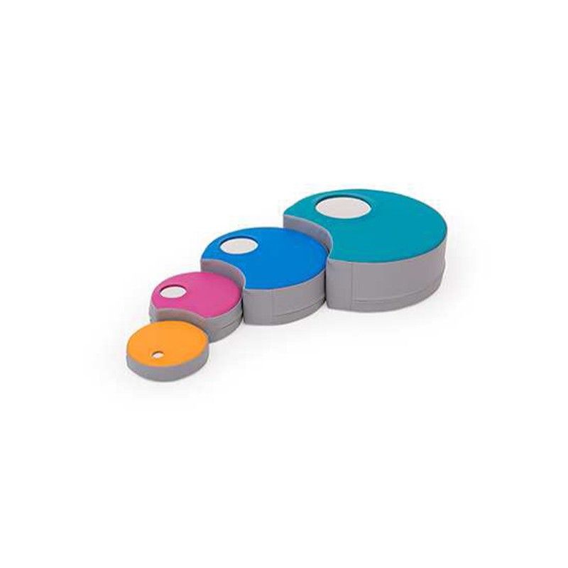 Colorato set composto da 4 pezzi con specchio incluso, in tessuto lavabile similpelle. Il set è resistente ed adatto ai bimbi in fase di crescita, stimolando le reazioni visive del bambino. I 4 componenti del set riflettono parte del viso del bimbo , stimolando la sua curiosità ed ingegno.