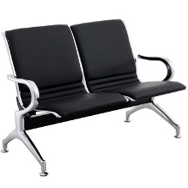 Panca d'attesa in metallo a 2 posti. Con comodi cuscini interi in ecopelle di colore nero. Il cuscino abbraccia tutta la seduta. Quest'ultima è composta in lamiera traforata e sagomata con bordi anteriori e posteriori antiurto.