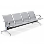 Panca d'attesa in metallo a 4 posti. Il sistema è costruito in acciaio ed è concepito con particolare cura per l'estetica, la robustezza e il comfort, raggiunto attraverso forme e dettagli ergonomici, oltre ad accessori come cuscini e rivestimenti in pelle sintetica leggermente imbottiti.