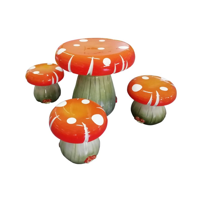 Set tavolo con 4 sedie Funghetto in resina. Bellissima composizione che conferisce un ottimo impatto scenografico.