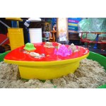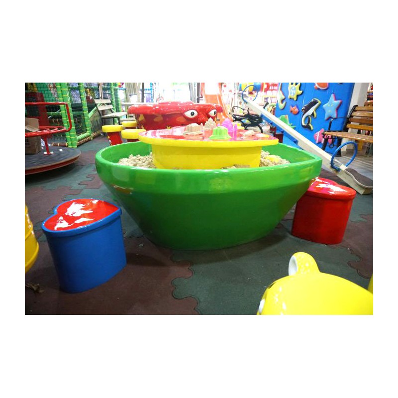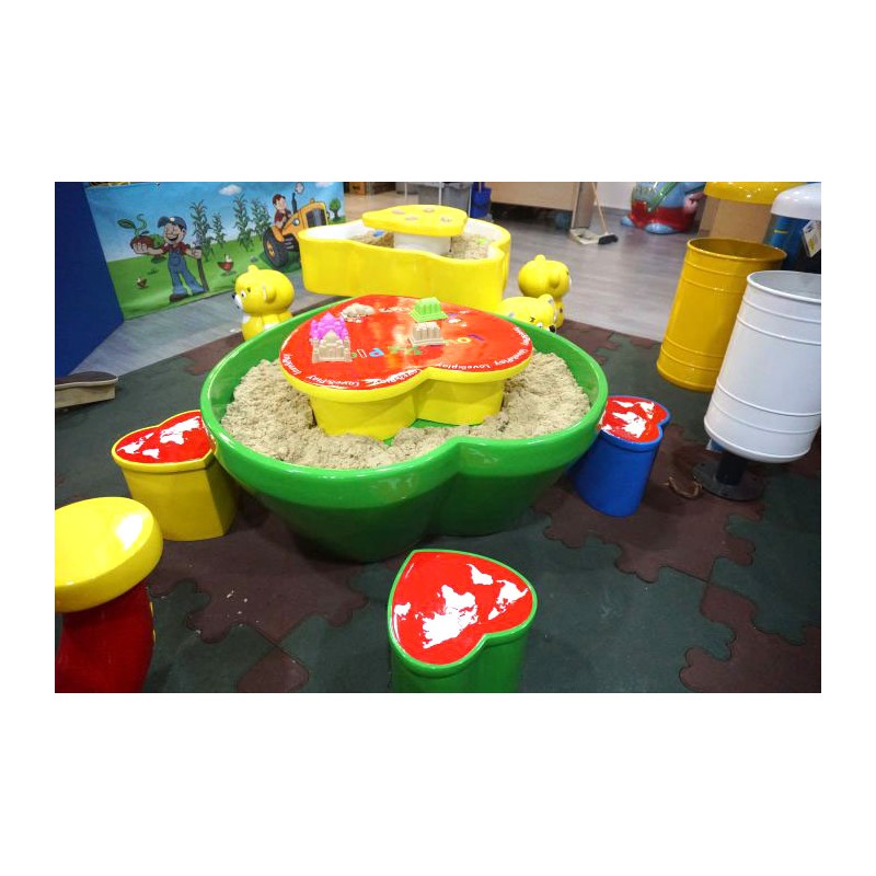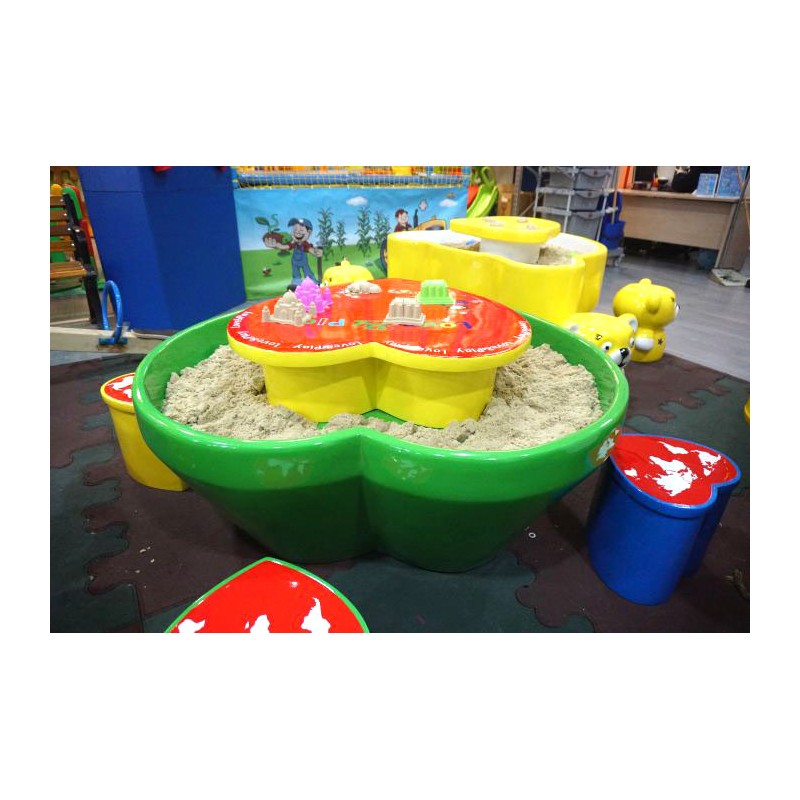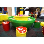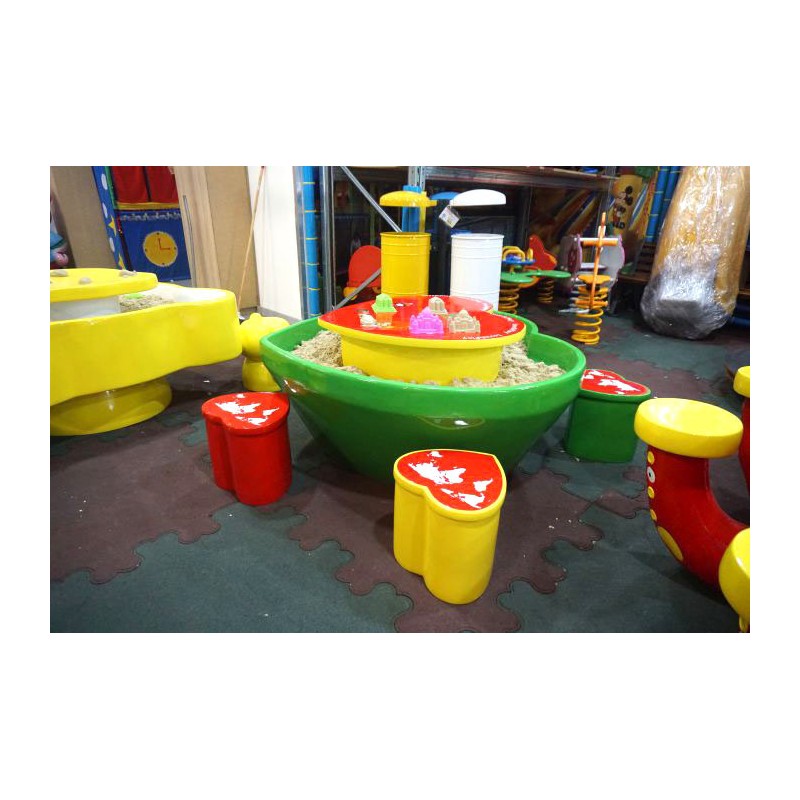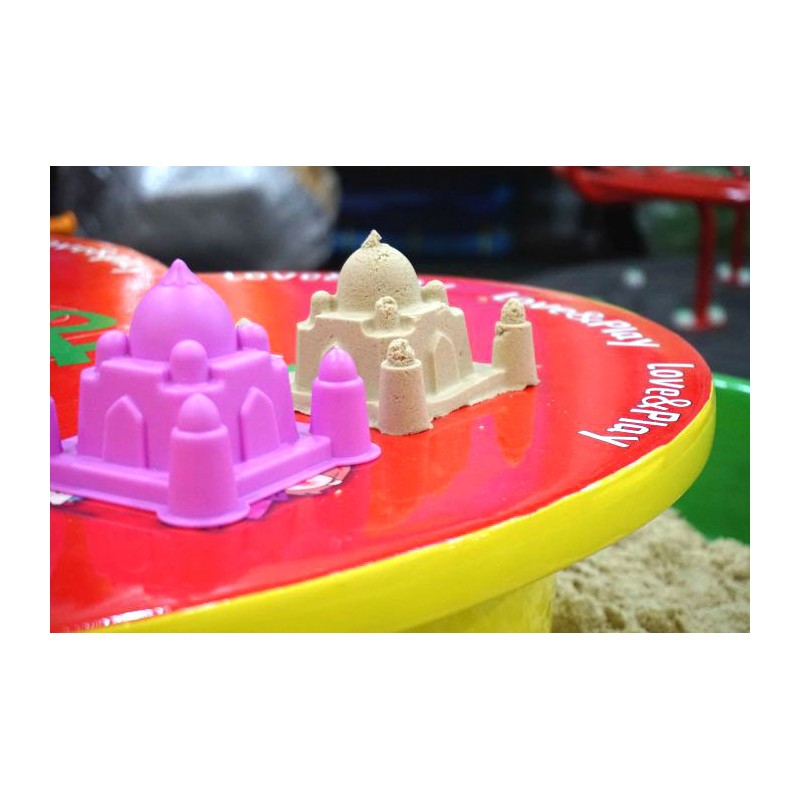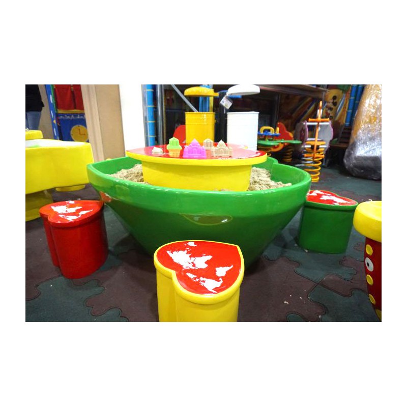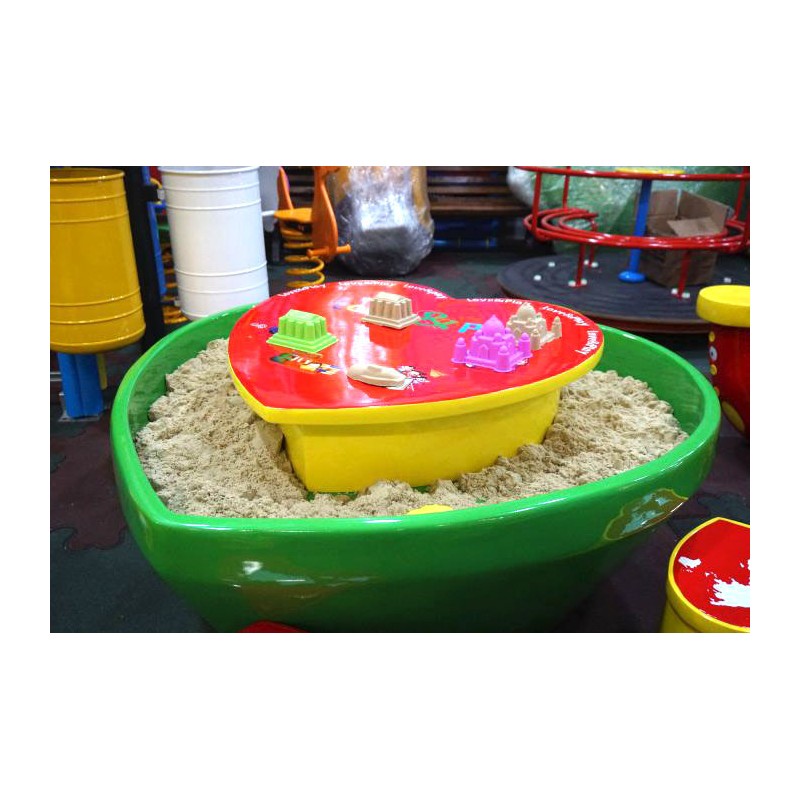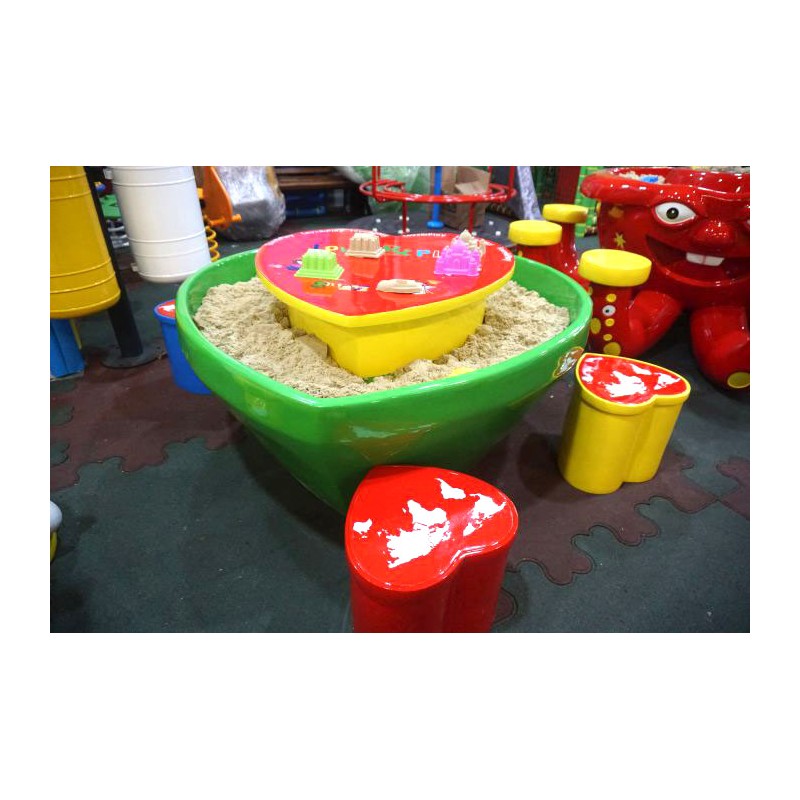 Originale tavolo a forma di cuore in resina, perfetto per attività sensoriali e creative. Dotato di una vasca centrale per contenere sabbia cinetica o acqua, consente ai bambini di giocare in modo educativo restando puliti e comodamente seduti. Adatto a scuole, nidi, ludoteche e ambienti per l'infanzia.